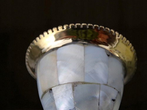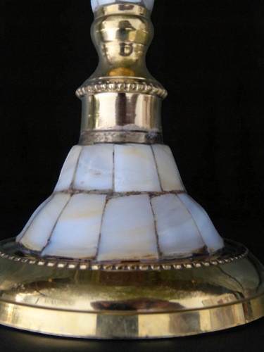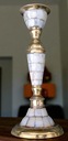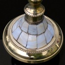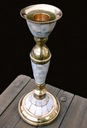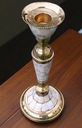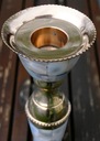 Wymiary: wys. 21 cm, średnica podstawy 8,5 cm, średnica u góry 5,5 cm, średnica na świecę 2,3 cm.