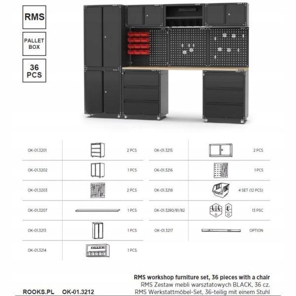 🔴 Meble warsztatowe na palecie, do samodzielnego złożenia w systemie RMS (Rooks Modular System), o solidnej metalowej konstrukcji z podwójnymi pełnymi drzwiami, z profilem wzmacniającym, zamykane na klucz. Po wewnętrznej stronie drzwi znajduje się blacha perforowana pozwalająca na maksymalne wykorzystanie powierzchni przy jednoczesnym łatwym do utrzymania porządku.