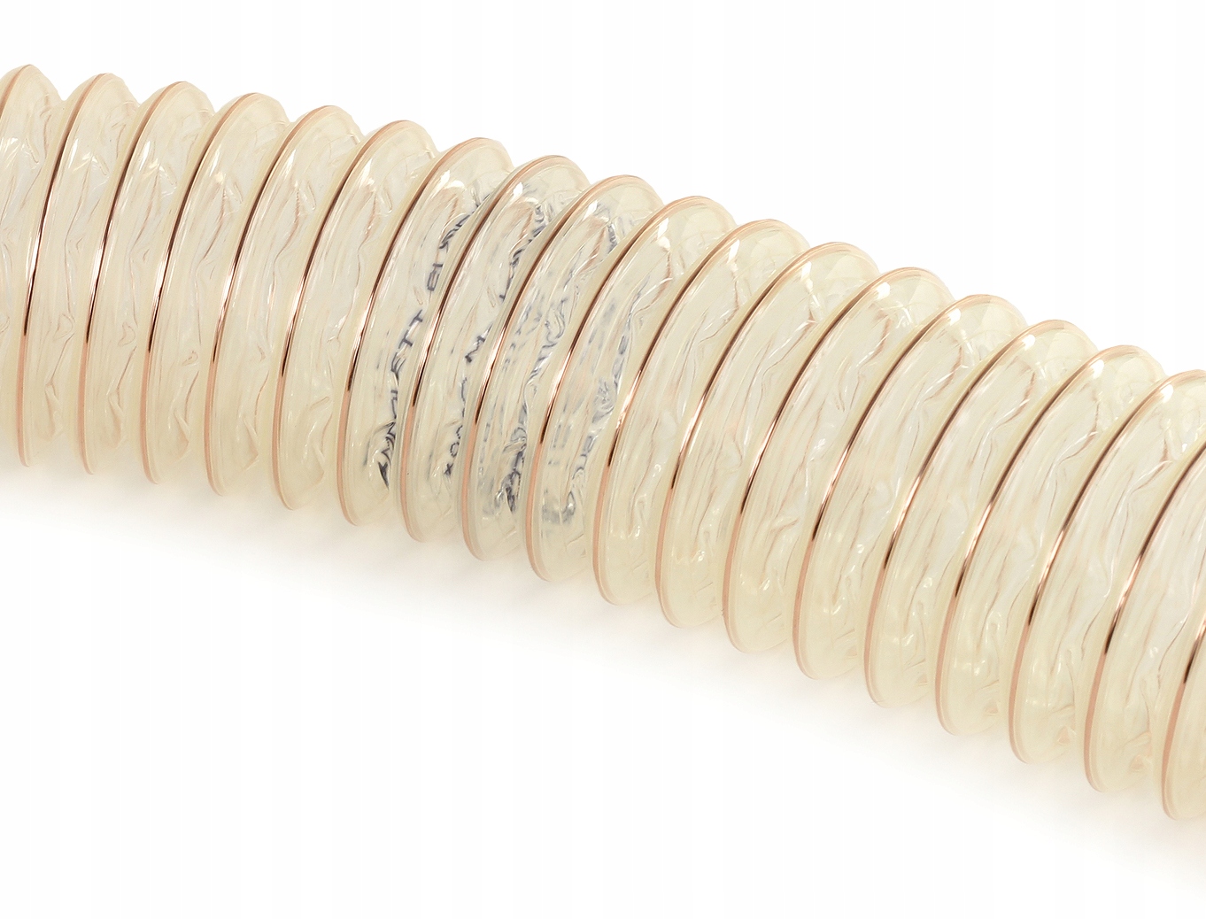 Wąż poliuretanowy ze spiralą ze stali miedziowanej, do palników na pellet, odsysania i przesyłu pyłów, trocin, wiórów i materiałów o właściwościach ściernych.