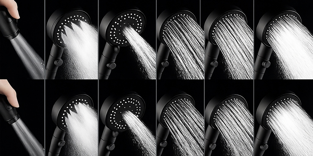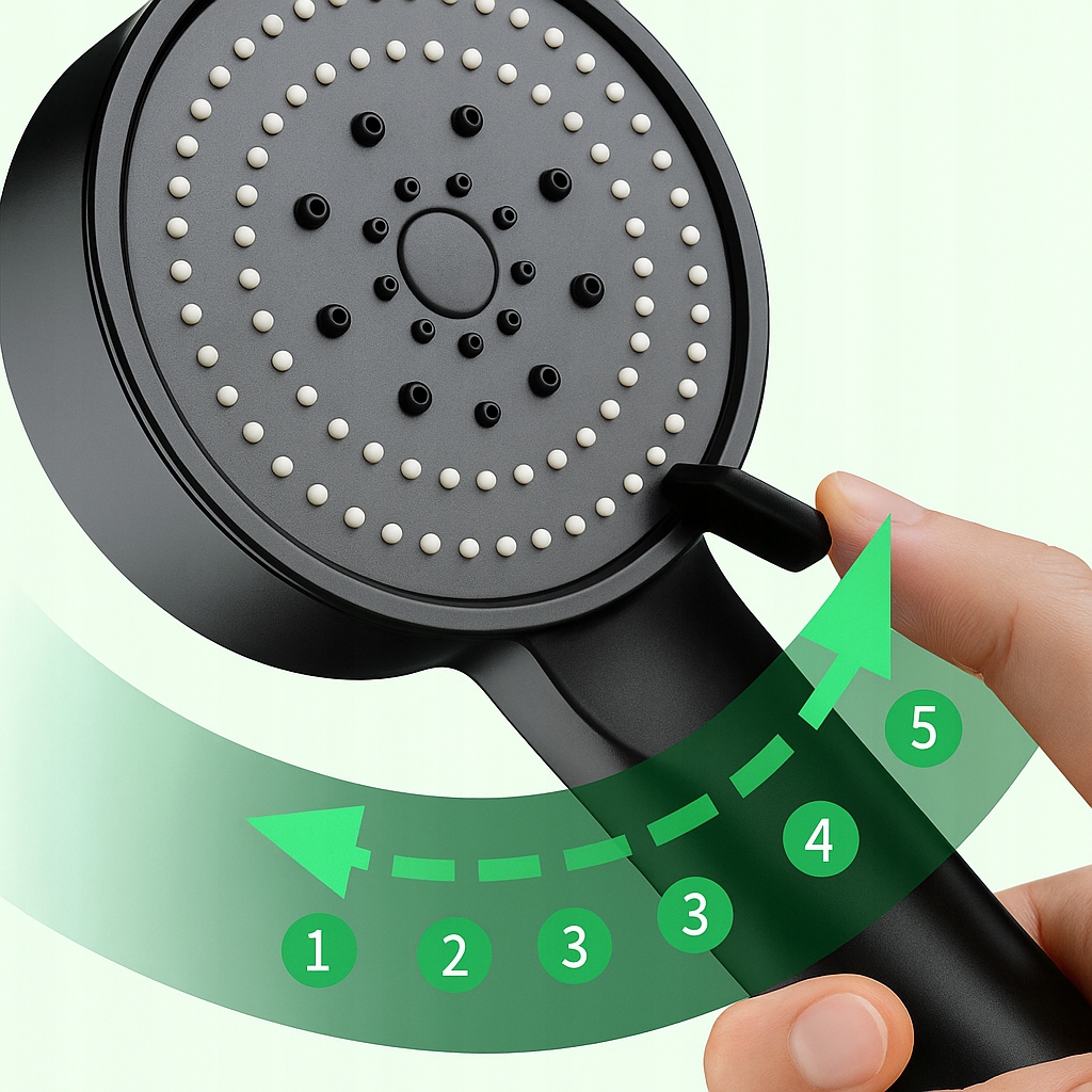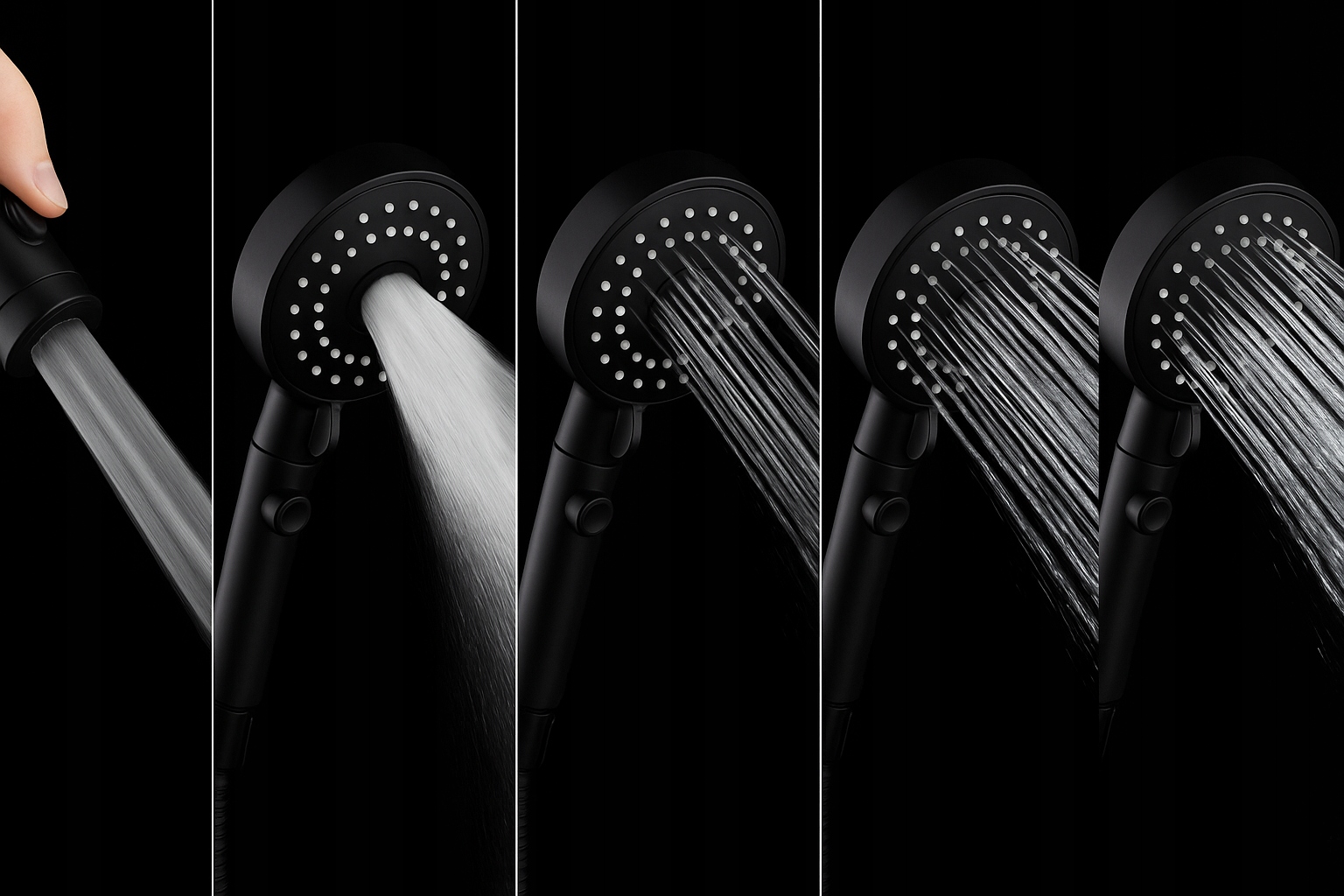 Jednym przyciskiem zmieniasz tryb – od silnego masażu na zmęczone mięśnie, przez delikatną mgiełkę na odprężenie, po klasyczny strumień do codziennego mycia.