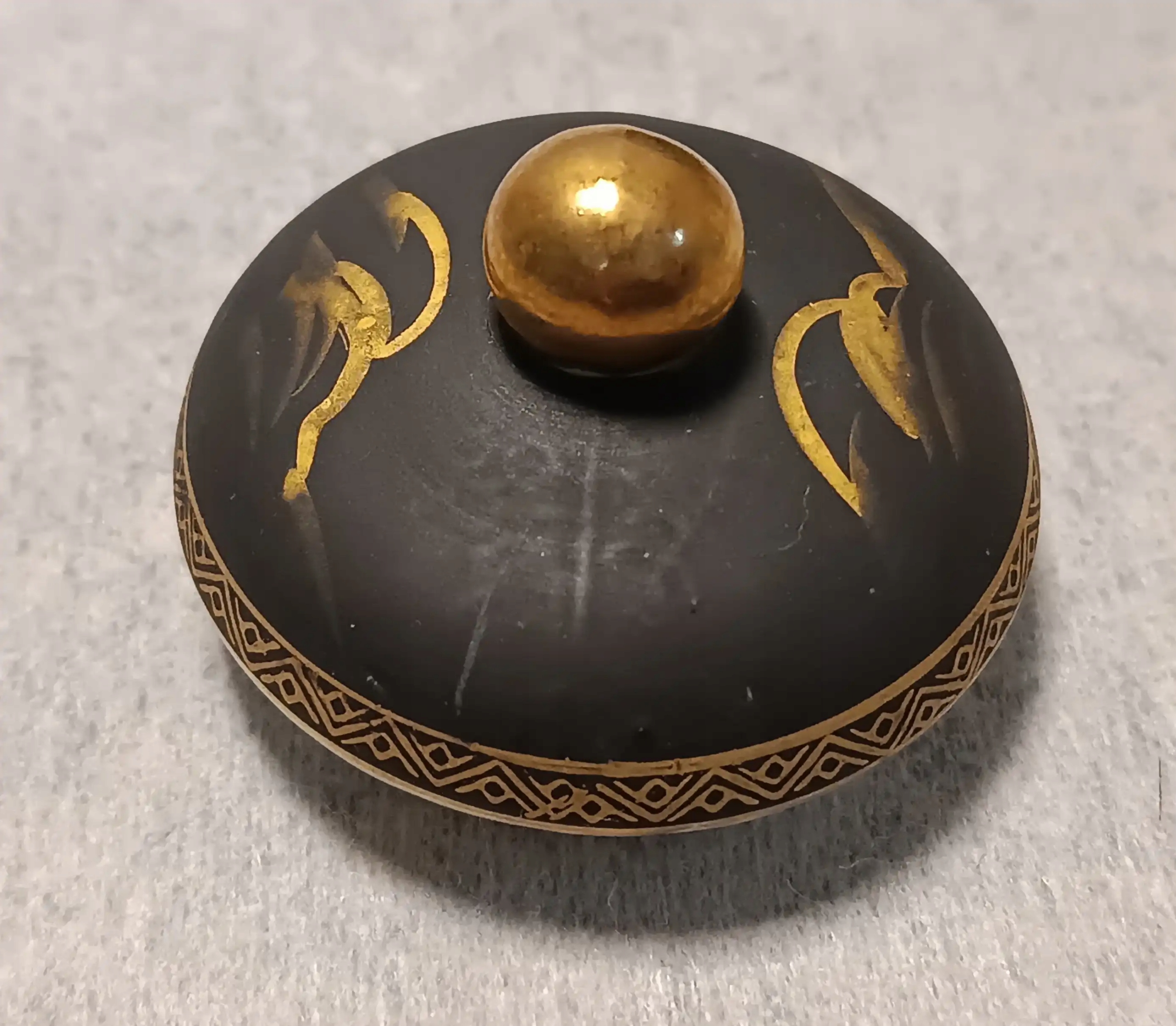 Na szczycie pokrywki znajduje się mały, okrągły, złoty uchwyt,