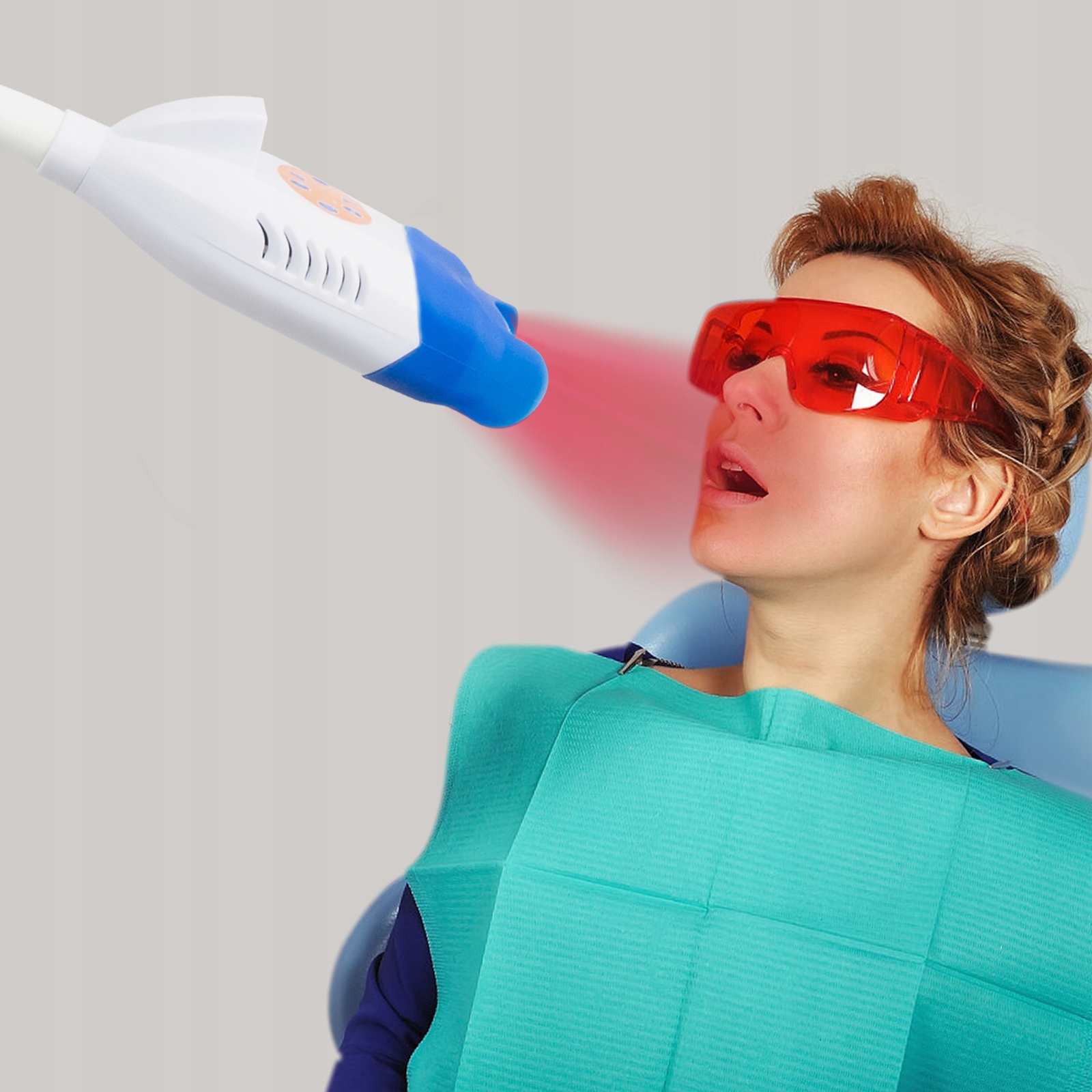 Jest to urządzenie światła chłodzącego, światło działa na środek do wybielania zębów (nie dołączony), który jest nakładany na powierzchnię zębów, Może być stosowany do żółknięcia i czernienia zębów spowodowanego osadzaniem się kawy, plam z herbaty i plam z wina, aby pomóc w szybkim wybielaniu zębów. Nadaje się do stosowania w klinikach dentystycznych, szpitalach i salonach kosmetycznych. Nadaje się zarówno dla dorosłych, jak i dzieci.