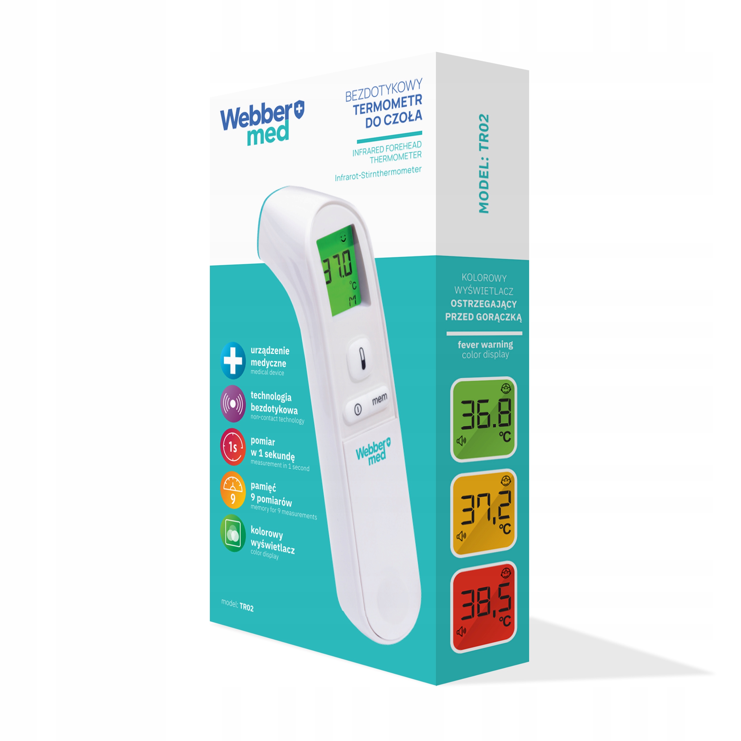 Webber Med TR02 to precyzyjny, medyczny termometr bezdotykowy, który mierzy temperaturę z czoła w zaledwie 1 sekundę – idealny dla dzieci, niemowląt, dorosłych i seniorów.