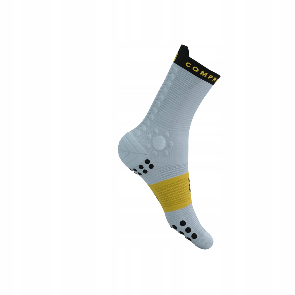 ProRacing Socks V4 Trail to nowa wersja doskonale znanych skarpetek ProRacing Socks V3 Trail. Są przeznaczone do biegów w terenie, jednak nie ma przeciwskazań, aby stosować je do biegania po asfalcie, do triathlonu czy na siłownię. W odniesieniu do "klasycznego" modelu skarpetki posiadają delikatnie grubszy i mocniejszy materiał, który jest bardziej odporny na rozdarcia i uszkodzenia. Elastyczna, oddychająca tkanina dobrze opina stopę i zapobiega jej przesuwaniu się na nodze. Specjalne wentylacyjne strefy odprowadzają wilgoć i pozwalają na swobodą cyrkulację powietrza, co podnosi komfort użytkowania szczególnie podczas ciepłej pogody. Delikatny ucisk poprawia krążenie krwi oraz stabilizuje wrażliwe obszary kostki i łuku stopy.