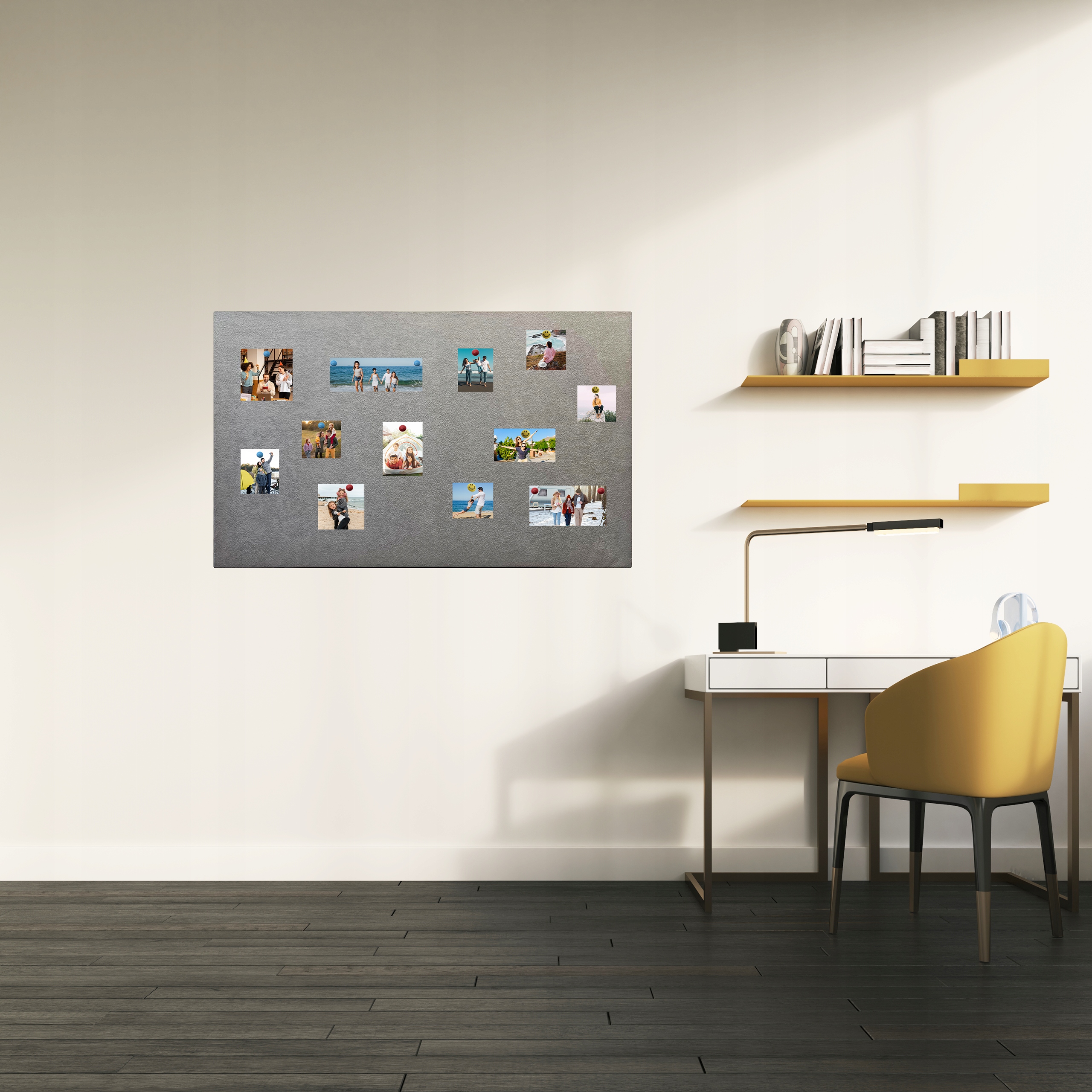 Wymiary tablicy magnetycznej nie są przypadkowe, spełniają proporcje złotego podziału, czyli takiego stosunku szerokości do wysokości, które ludzkie oko postrzega jako piękne. Tablica jest pokryta miłą w dotyku tkaniną, która dodaje wnętrzu przytulnego charakteru i wrażenia ekskluzywności.