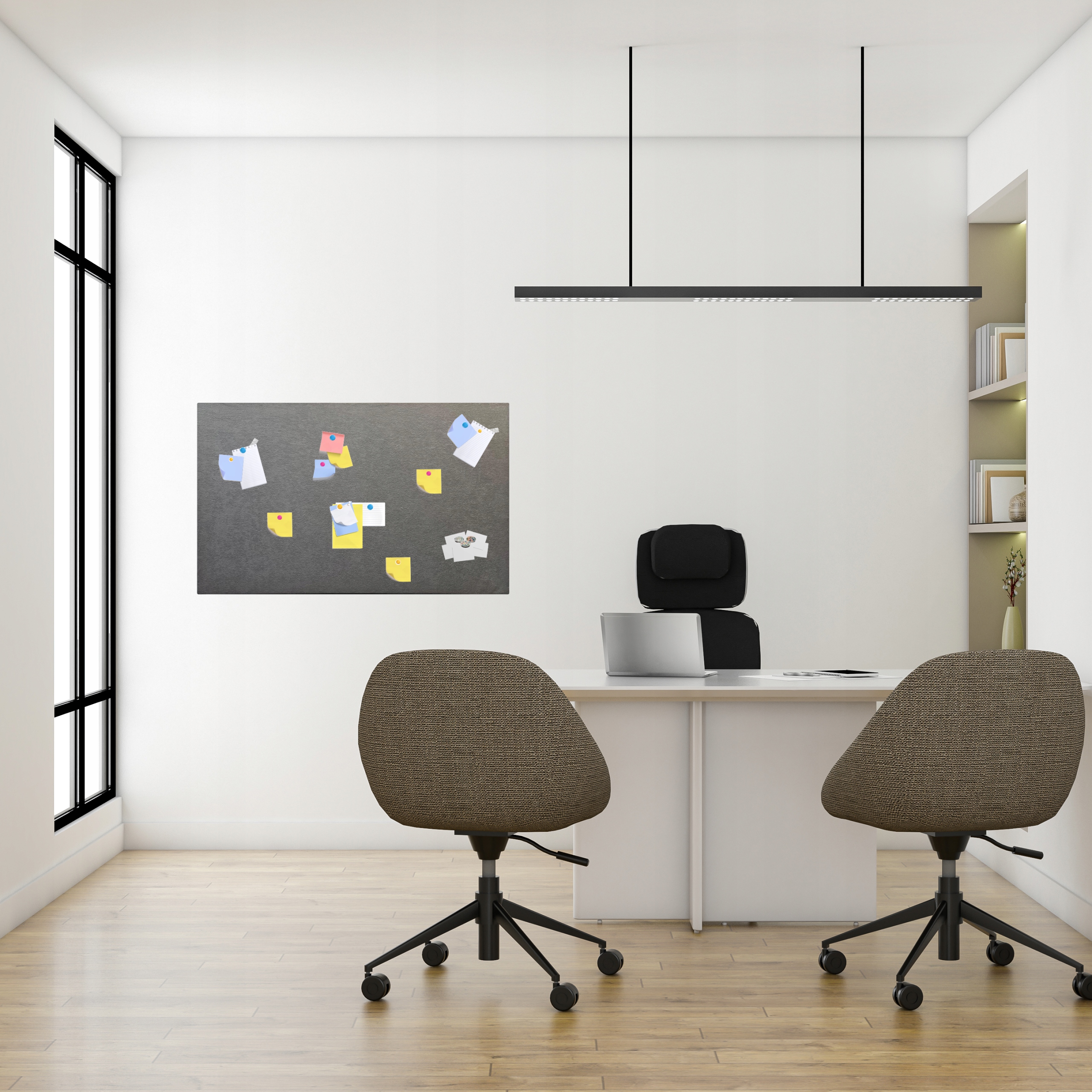 Tapicerowana tablica magnetyczna to nie jest zwykła tablica, to Twoja supermoc w biurze i jedyny członek zespołu, który naprawdę wie, co się dzieje w firmie. Nie ma potrzeby ładowania, nie zawiesza się, nie wymaga hasła, nie narzeka i nie ucieknie na home office w przeciwieństwie do Twojego zespołu w poniedziałek rano po długim weekendzie :)