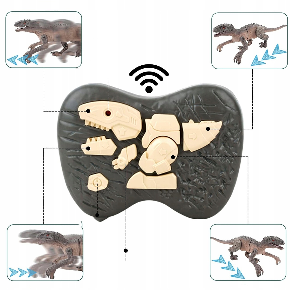 Wyjątkowy pilot w kształcie skamieniałości sprawia, że obsługa jest bardzo prosta. Zabawka Dinozaur może chodzić do przodu/do tyłu, skręcać w prawo/w lewo i jednocześnie wydawać ryczące dźwięki. Po naciśnięciu przycisku „One Click Demo” zdalnie sterowany dinozaur wykonuje określone ruchy. To jak prawdziwy Welociraptor kroczący przed Tobą. Pozwól swojemu dziecku przeżyć jurajską przygodę!