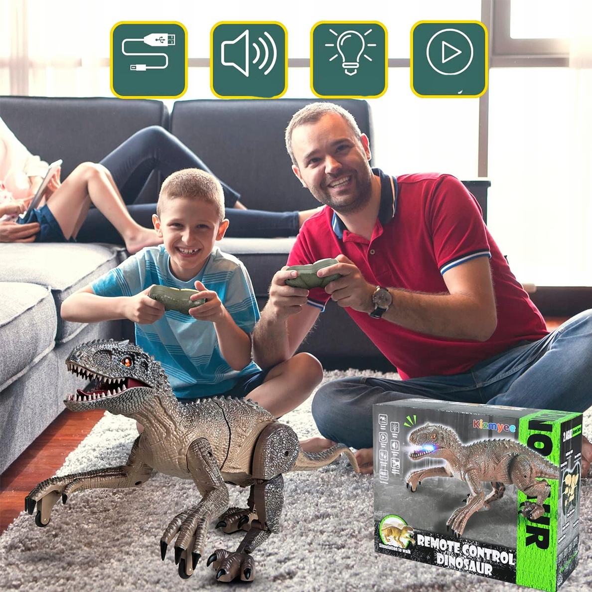 Oszałamiające światła LED, zdalnie sterowany chód i chwiejne ruchy z realistycznym rykiem. Wykonuje perfekcyjne ruchy jak prawdziwy dinozaur pchany kołami. Realistyczne figurki dinozaurów zwiększają radość z zabawy i zachęcają dzieci do kreatywnej zabawy.