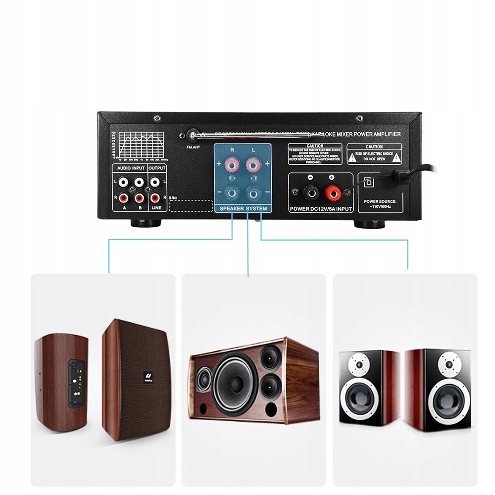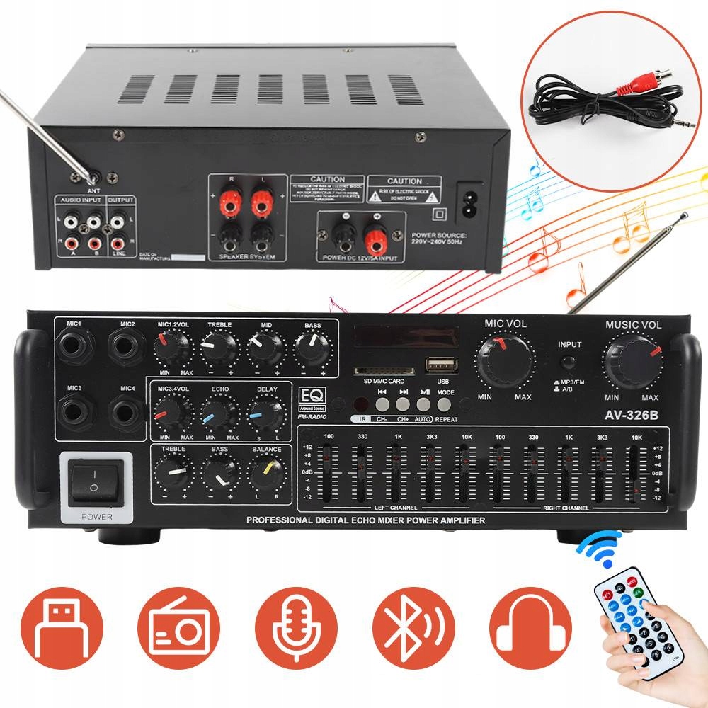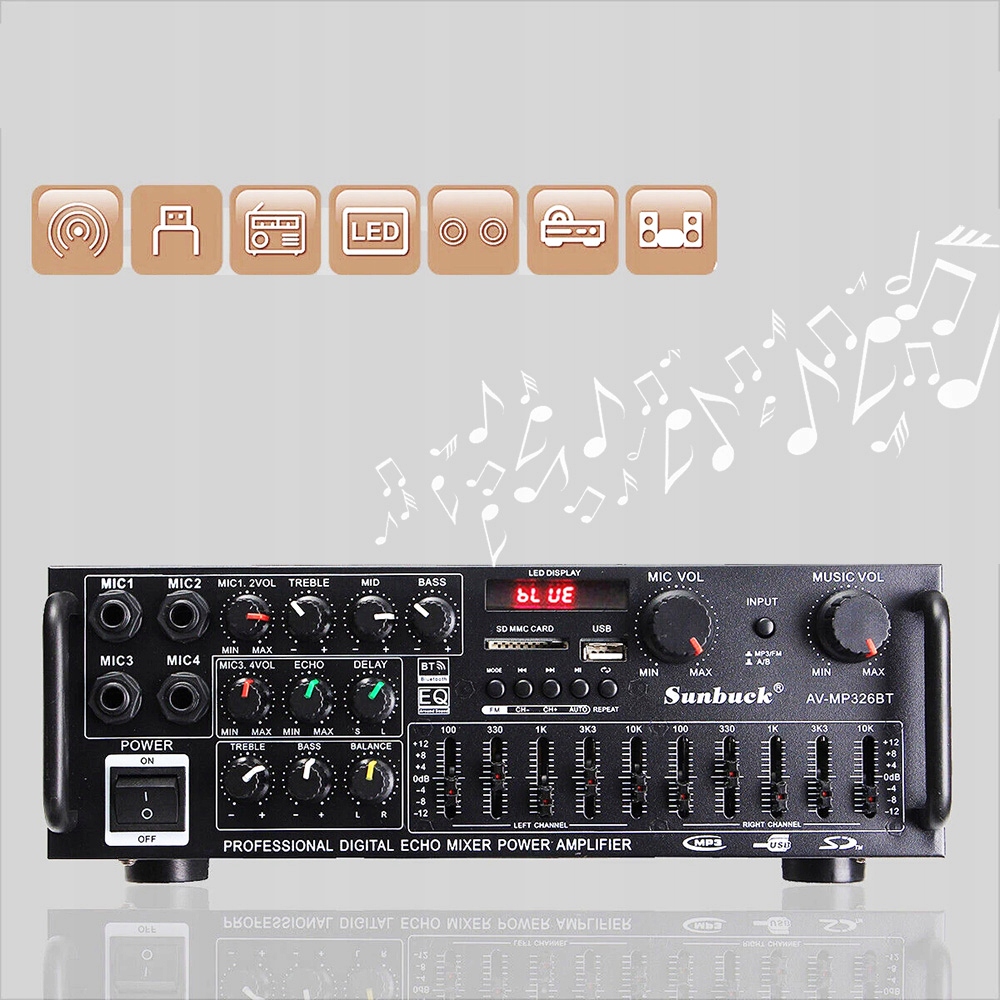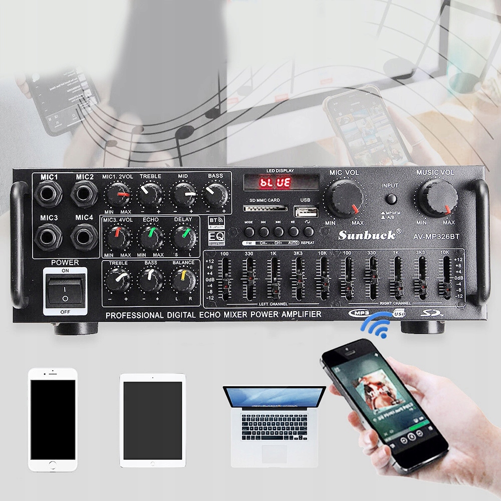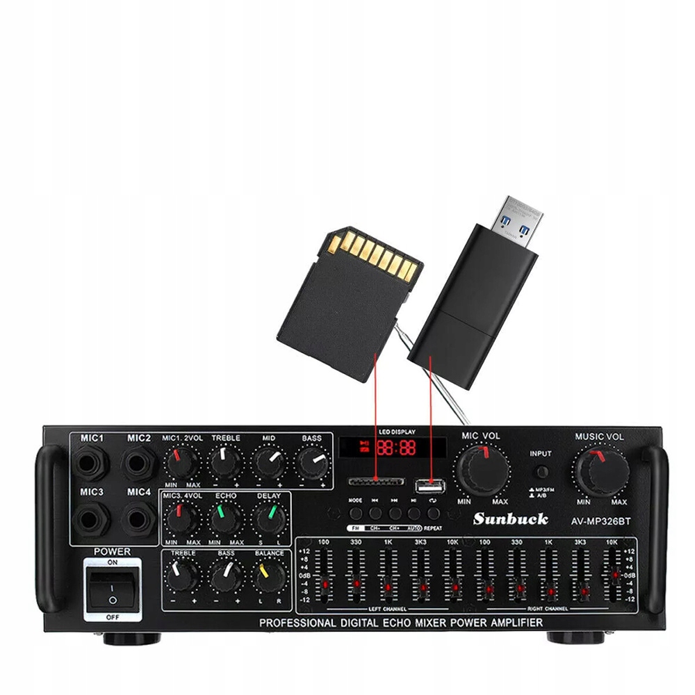 🎵 Obsługuje 4 wejścia mikrofonowe z ustawieniami pogłosu i opóźnienia mikrofonu.