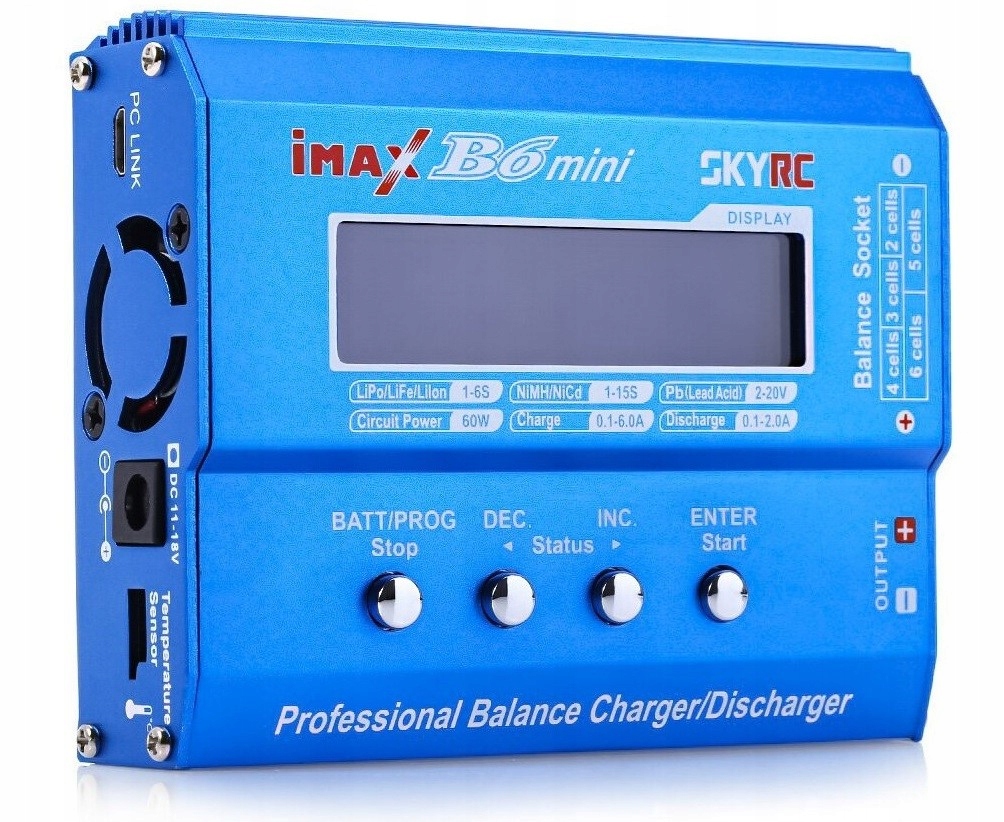 SKYRC IMAX B6 MINI to mniejsza, bardziej kompaktowa wersja ładowarki mikroprocesorowej iMAX B6. Pomimo zmniejszonego rozmiaru, urządzenie posiada podniesioną moc o 20%. Dodatkowym atutem IMAX B6 MINI jest możliwość podłączenia do komputera i stałego monitorowania procesu ładowania lub też aktualizacji oprogramowania. Ładowarka posiada wbudowany wentylator poprawiający kulturę pracy urządzenia.