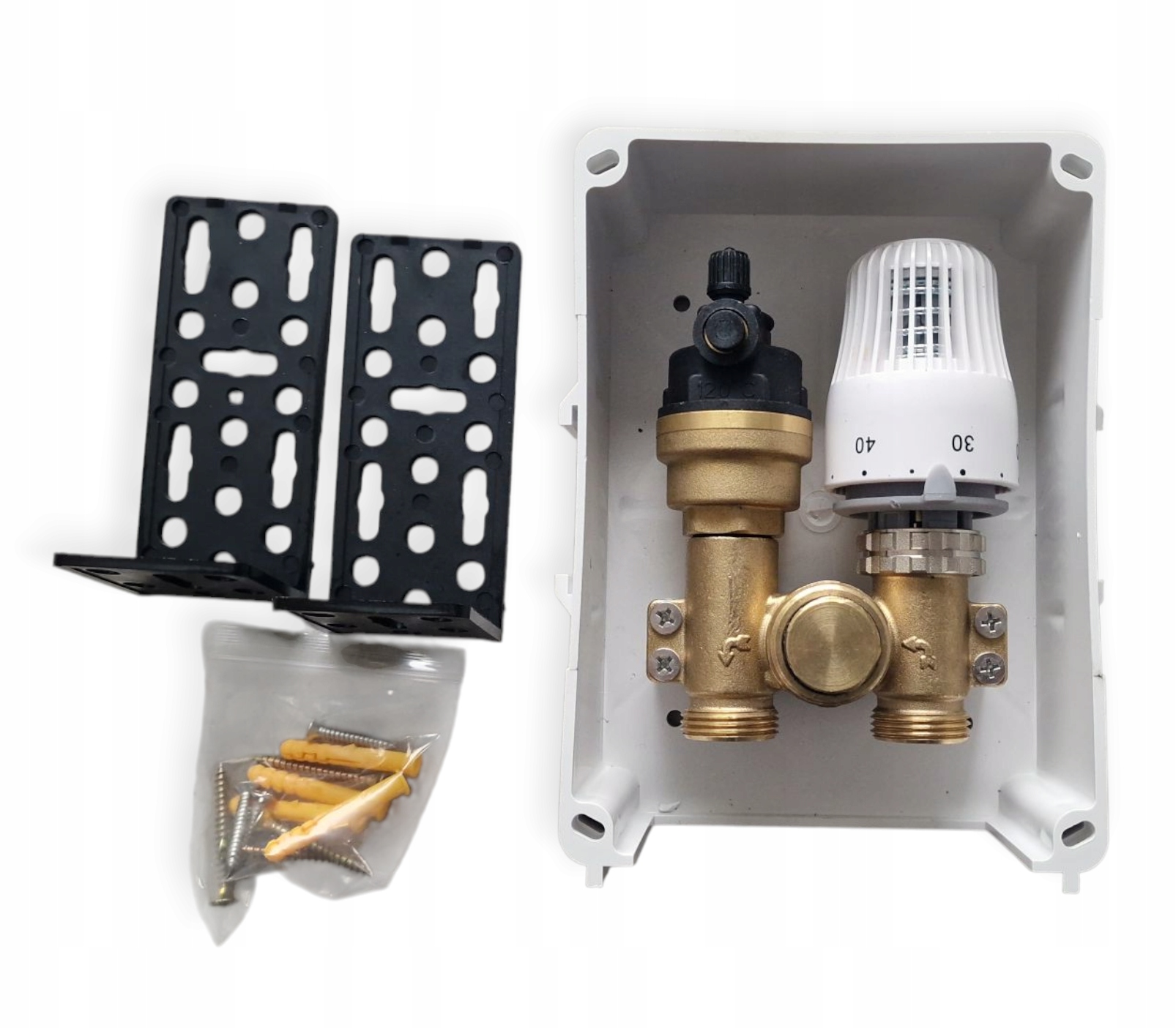 Zestaw składa się z głowicy RTL, zaworu termostatycznego ze specjalistyczną wkładką o zwiększonym przepływie, specjalistycznym odpowietrznikiem automatycznym, zestawem śrub i łapami mocującymi.Zestaw montowany jest na powrocie pętli ogrzewania podłogowego. Zakres regulacji głowicy zapewnia właściwą temperaturę czynnika grzewczego podczas przepływu przez pętlę.