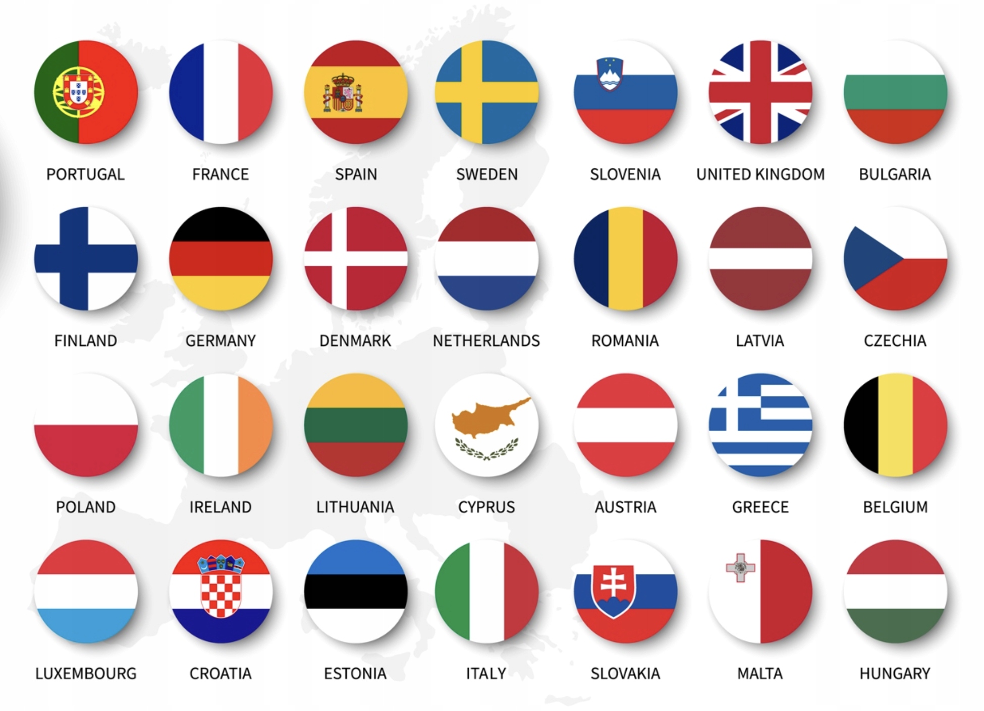 Австрия, Бельгия, Болгария, Хорватия, Кипр, Чехия, Дания, Эстония, Финляндия, Франция, Французская Гвиана, Германия, Гибралтар, Греция, Гваделупа, Венгрия, Исландия, Ирландия, Италия, Латвия, Лихтенштейн, Литва, Люксембург, Мальта, Мартиника, Майотта, Нидерланды, Норвегия, Польша, Португалия, Реюньон, Румыния, Сан-Марино, Словакия, Словения, Испания, Швеция, Великобритания