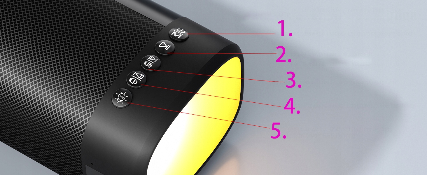5.Krótkie naciśnięcie przełącza tryb oświetlenia RGB, długie naciśnięcie włącza/wyłącza oświetlenie RGB
