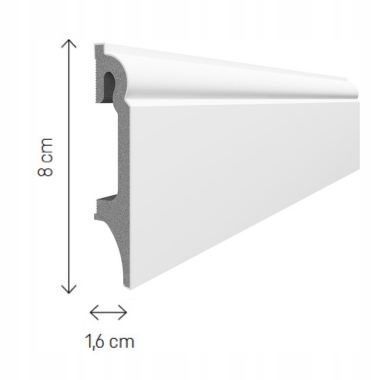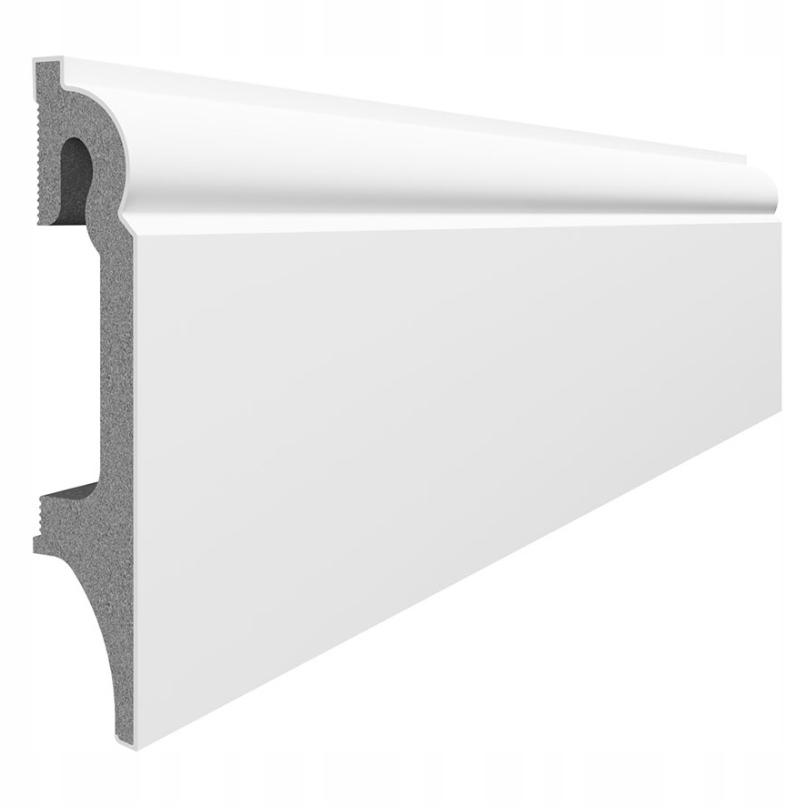Listwa Espumo zbudowana jest z lekkiej spienianej warstwy wewnętrznej i twardej warstwy zewnętrznej, która zapewnia odporność na uszkodzenia mechaniczne i wodoodporność.