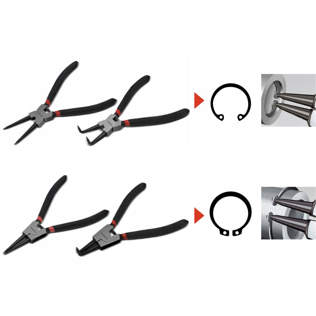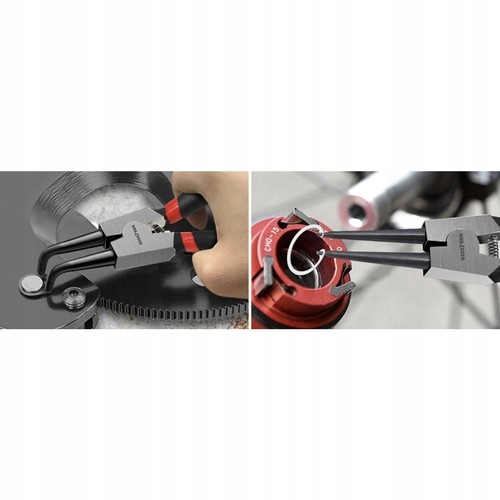 Dzięki szczypcom do pierścieni można je szybko i sprawnie montować lub demontować. Narzędzie umożliwia precyzyjne i kontrolowane działanie, co przyspiesza procesy naprawcze lub montażowe.