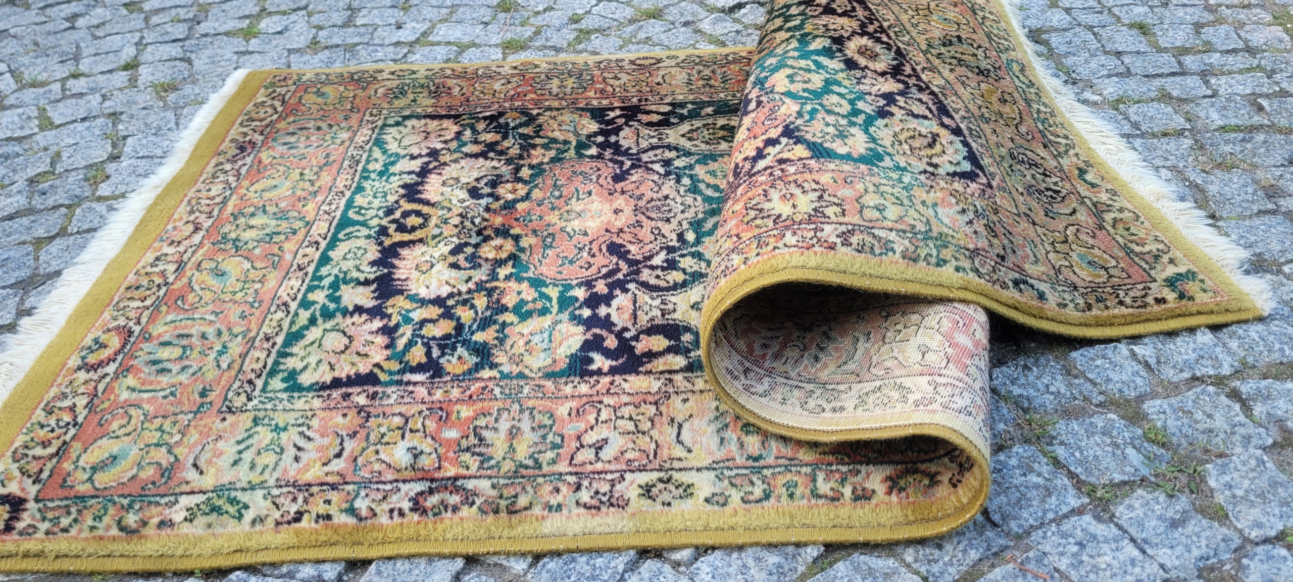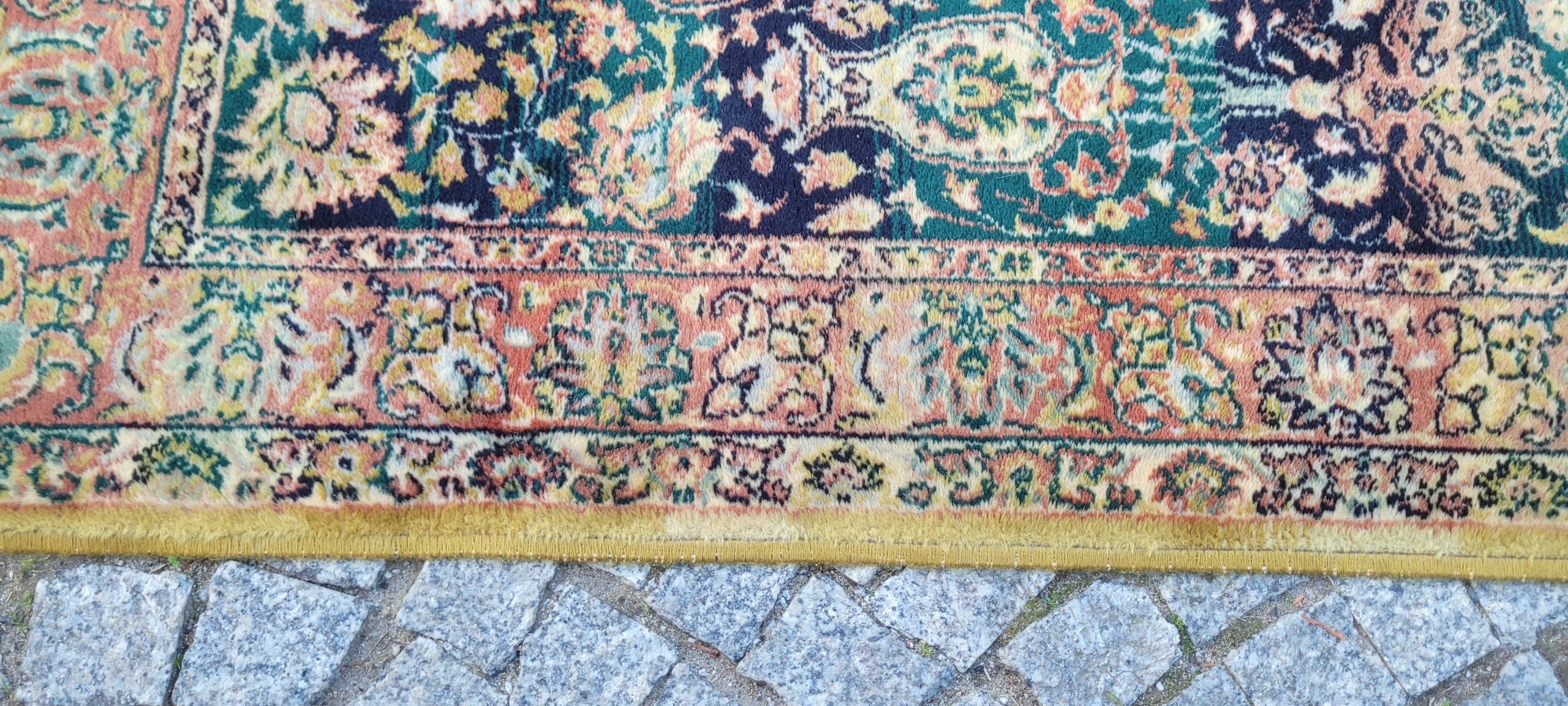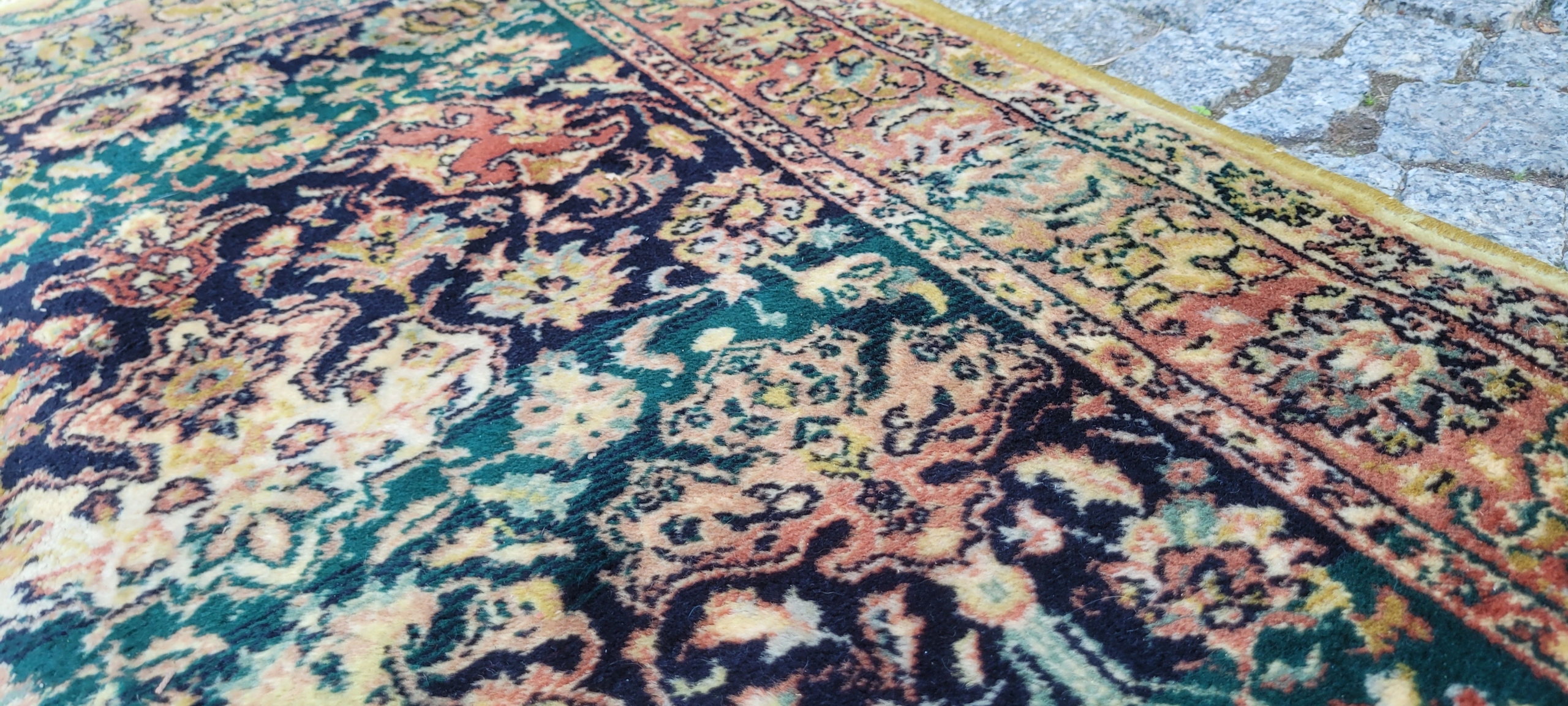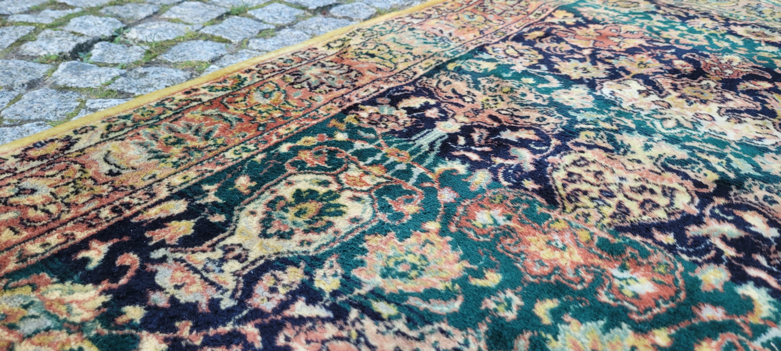 Красивый блестящий шерстяной ковер с персидским рисунком. Сплетенный машинной техникой с высоким качеством шерсть. Он отличается компактным, приятным на ощупь руном, красивой цветовой гаммой и дизайном. Ковер сохранился в очень хорошем состоянии.