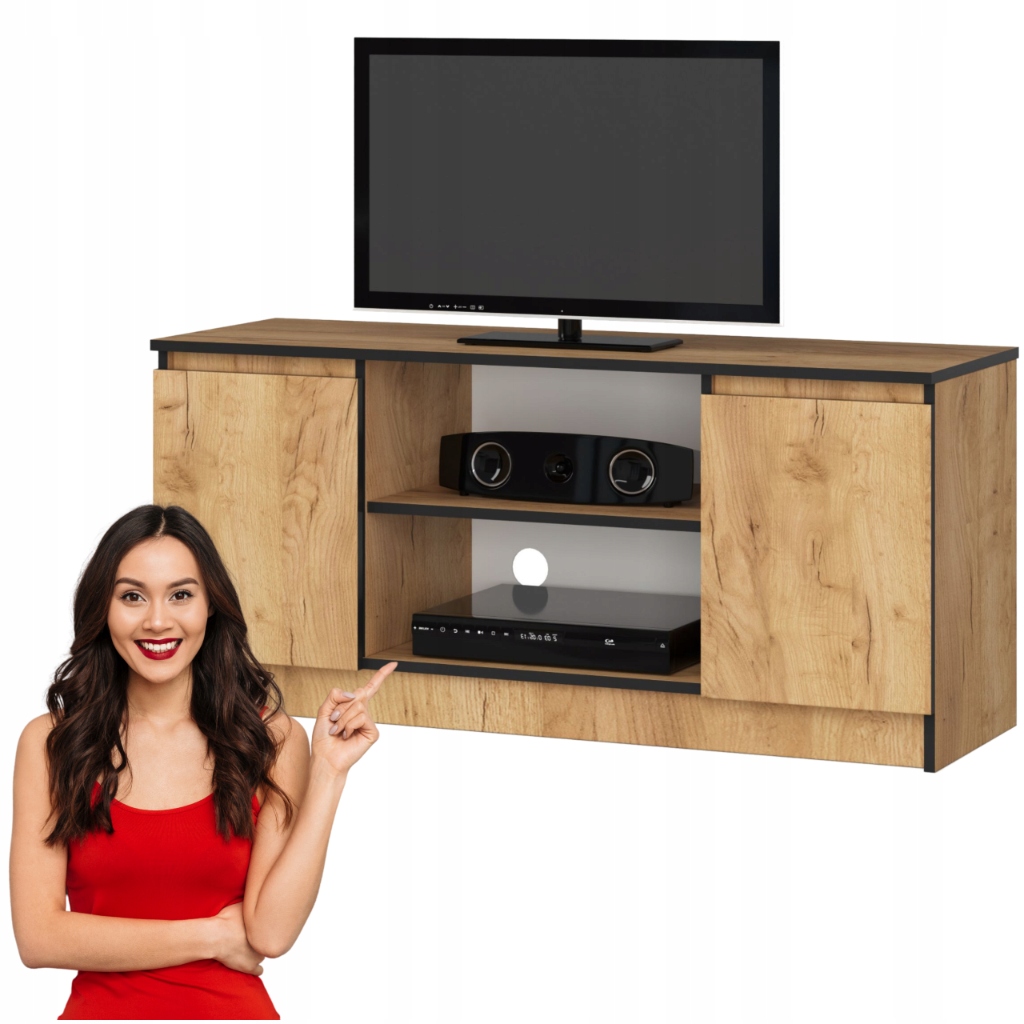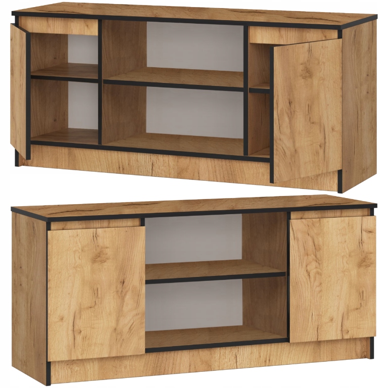 NOVO RTV120 w odcieniu dębu kraft to połączenie stylowego designu i funkcjonalności. Naturalna struktura drewna nadaje wnętrzu przytulnego charakteru, a jednocześnie zachowuje nowoczesny styl. Boczne szafki z półkami oraz otwarte przestrzenie na środku pozwalają na wygodne przechowywanie sprzętu RTV i akcesoriów. System bezuchwytowy podkreśla minimalistyczną formę, a matowe wykończenie gwarantuje elegancki wygląd bez refleksów światła. Wykonana z wytrzymałej płyty laminowanej, zabezpieczona obrzeżem ABS, zapewnia odporność na codzienne użytkowanie. Produkt od polskiego producenta, który stawia na solidne wykonanie.