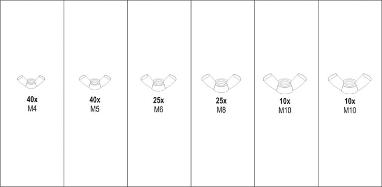 150 SZT NAKRĘTKI MOTYLKOWE METRYCZNE MIX YT-06776