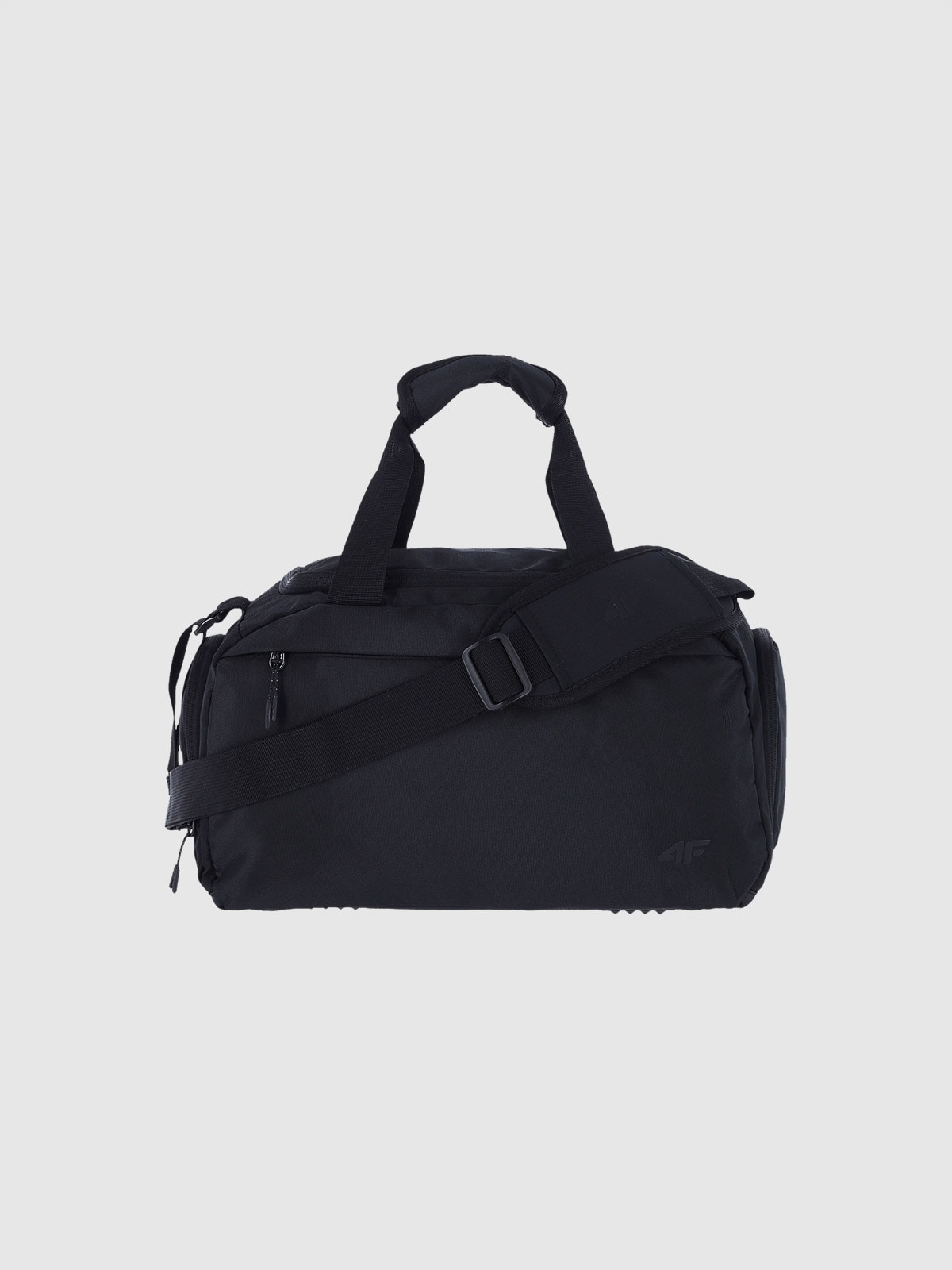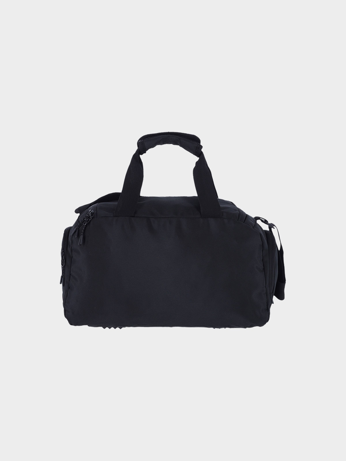 Ta funkcjonalna torba posiada wiele praktycznych rozwiązań, w tym boczną kieszeń na obuwie oraz 2 kieszenie zewnętrzne zapinane na zamek. Komora główna jest zapinana na dwukierunkowy zamek, a wewnątrz znajduje się dodatkowa kieszonka na zamek. Lekko usztywnione, laminowane dno z gumowymi ochraniaczami zapewniają wytrzymałość i ochronę przed wilgocią. Torba posiada regulowany pasek na ramię oraz podwójny uchwyt do noszenia w dłoni z ochraniaczem. Sprawdzi się jako torba sportowa, treningowa lub podróżna, a jej nowoczesny design z pewnością przyciągnie uwagę.
