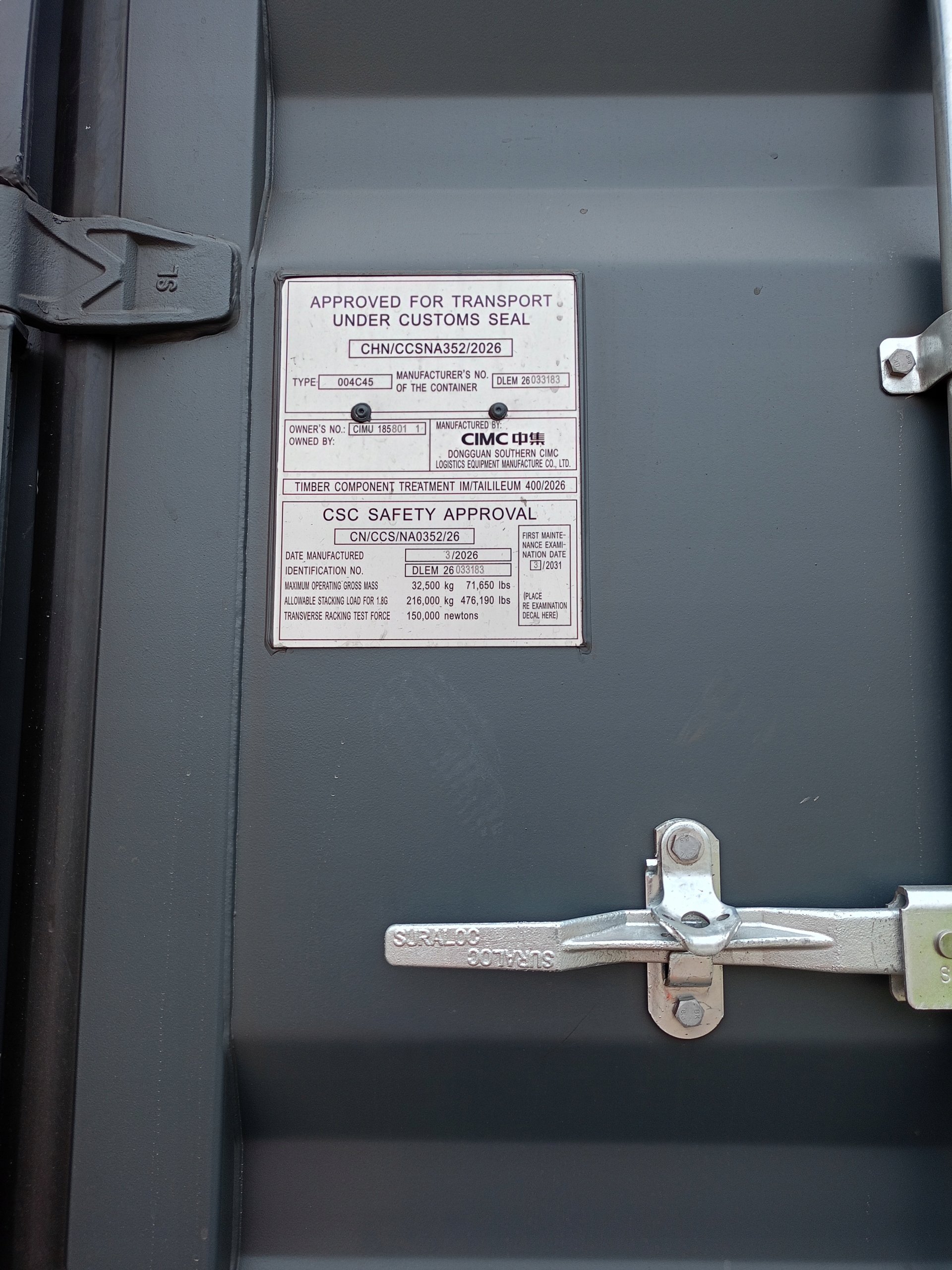 Zewnętrzne : długość 12.192 m x szerokość 2.438 m x wysokość 2.896 m