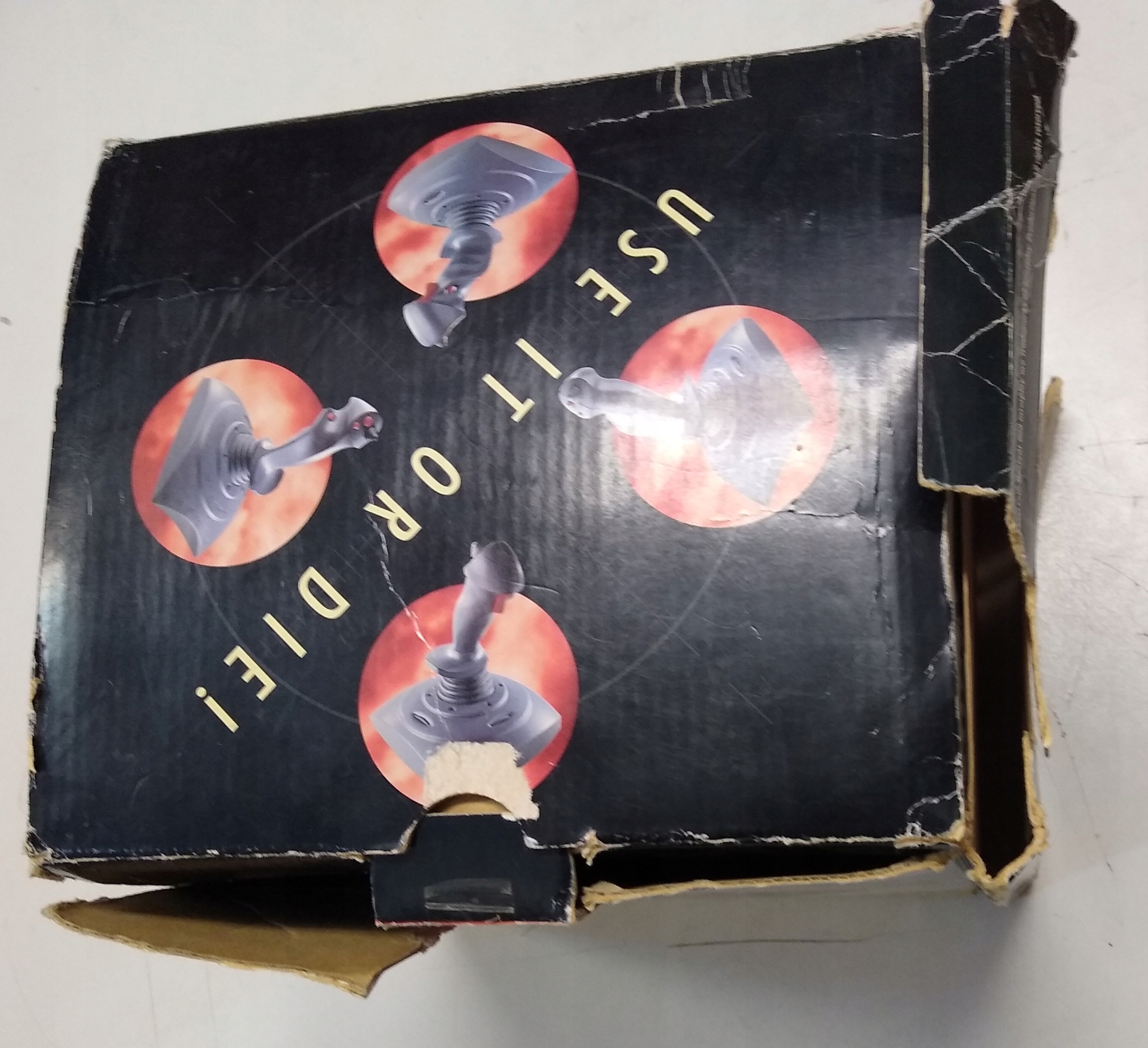 Stan joystick nie był testowany ze względu na brak możliwości podłączenia złącza db-15, brak śladów zalania czy zawilgocenia, pudełko posiada liczne naddarcia i uszkodzenia
