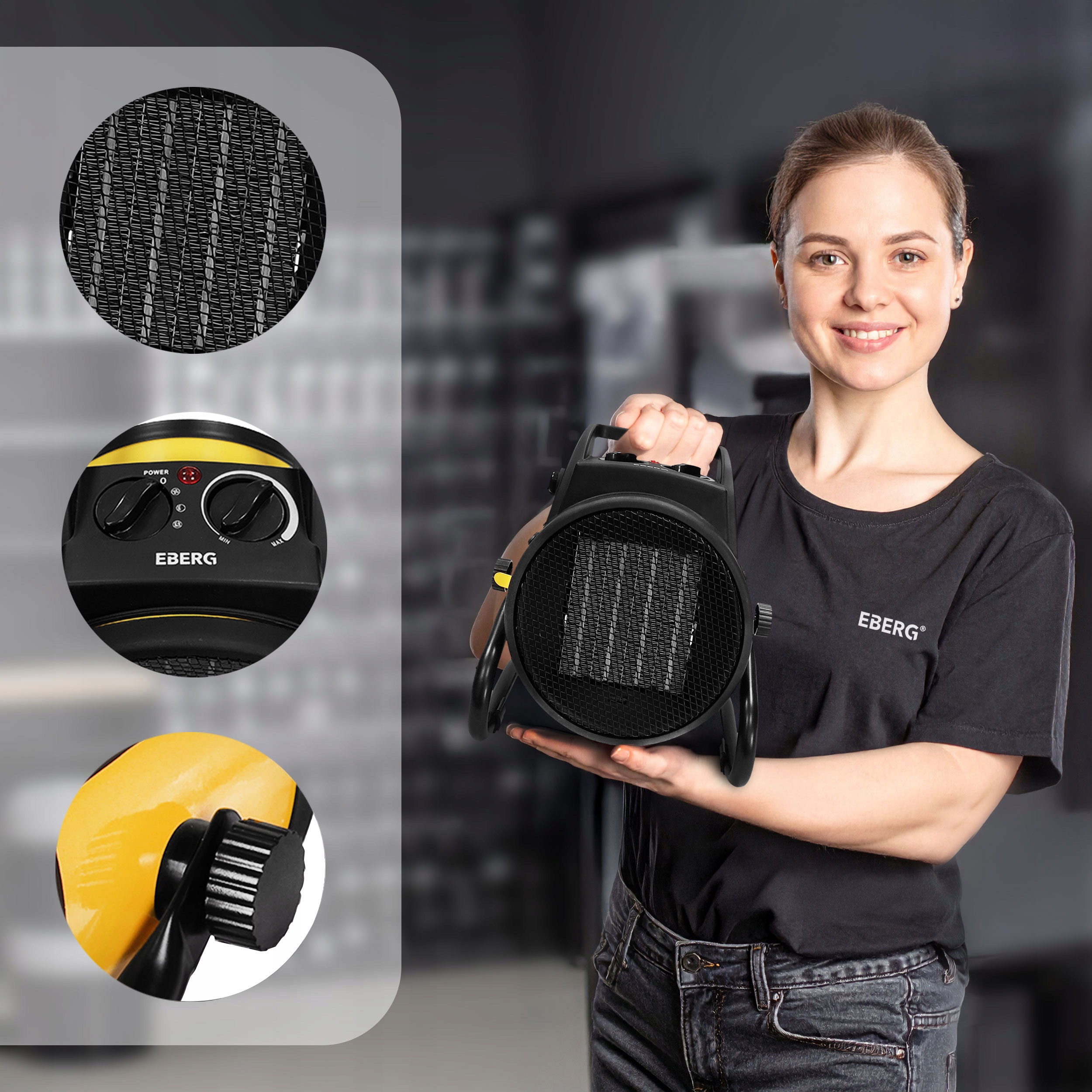 EBERG® ETH 20 to termowentylator stworzony dla komfortu i bezpieczeństwa – działa bez ognia i spalin, nie zużywa tlenu, a dzięki zabezpieczeniu przed przegrzaniem i automatycznemu chłodzeniu pracuje niezawodnie przez długi czas.