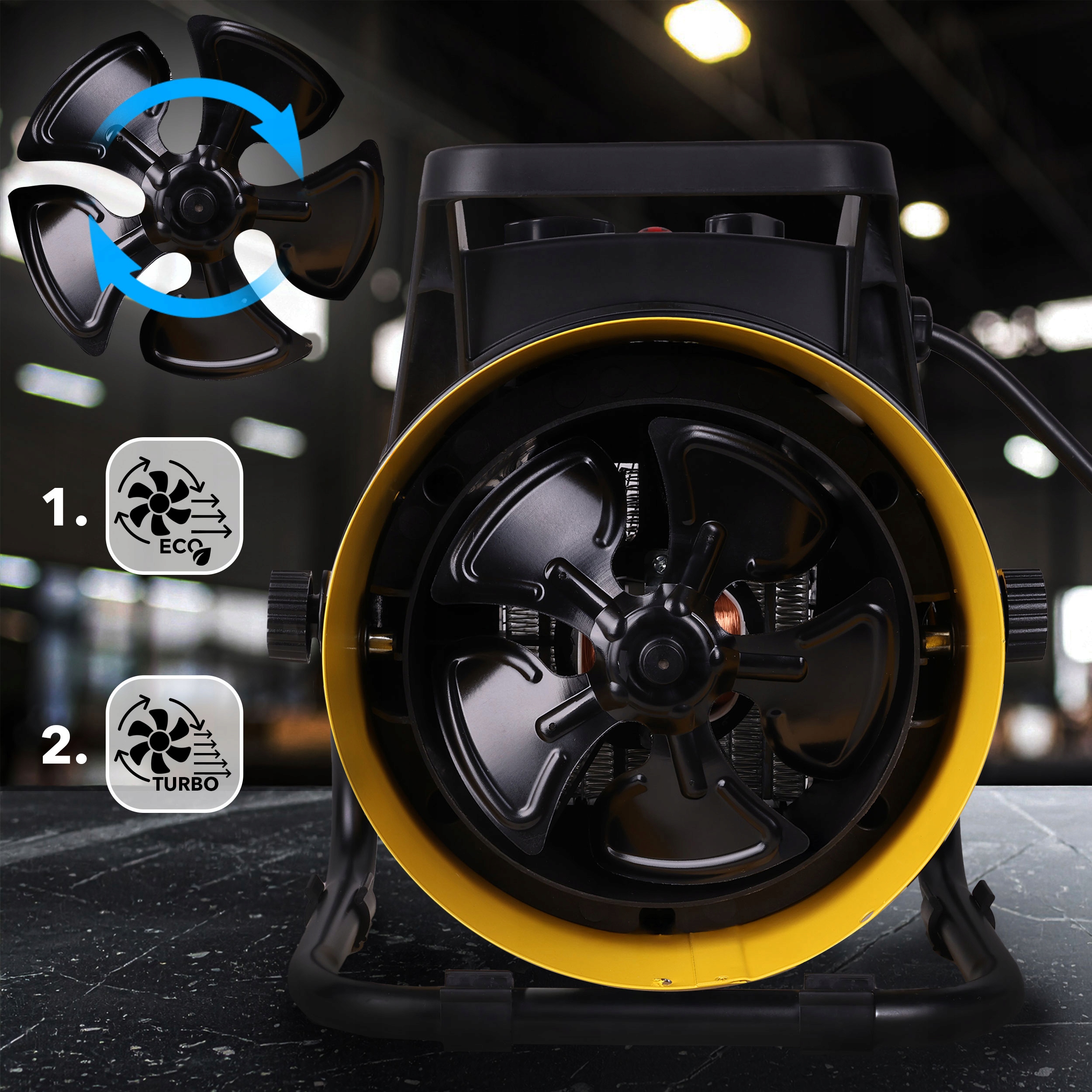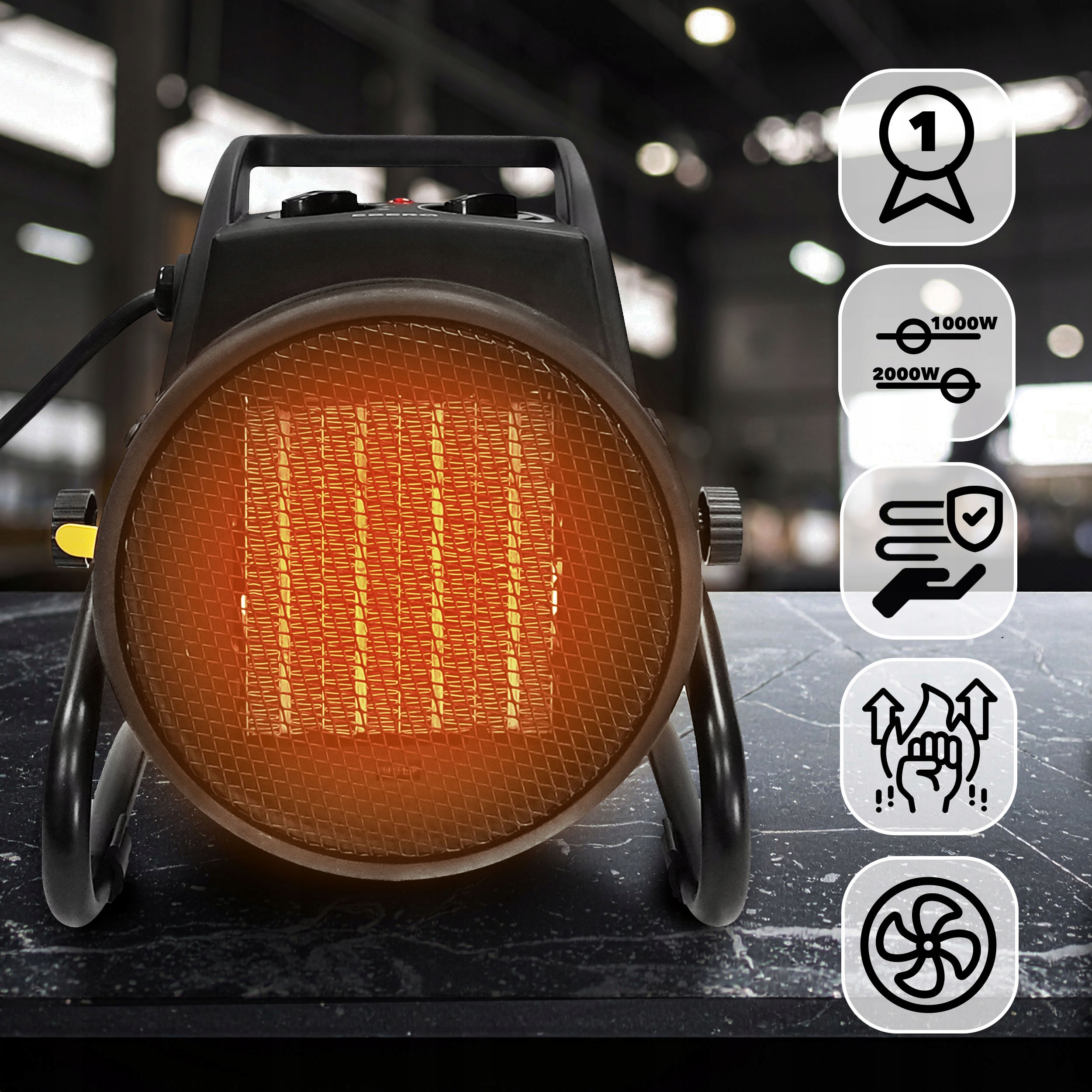 Do wyboru masz dwa tryby grzania: ekonomiczny 1000 W i pełną moc 2000 W, dzięki czemu dopasujesz działanie do swoich potrzeb. Co więcej, zintegrowany wentylator może pracować także bez funkcji grzania, zapewniając efektywną cyrkulację powietrza.