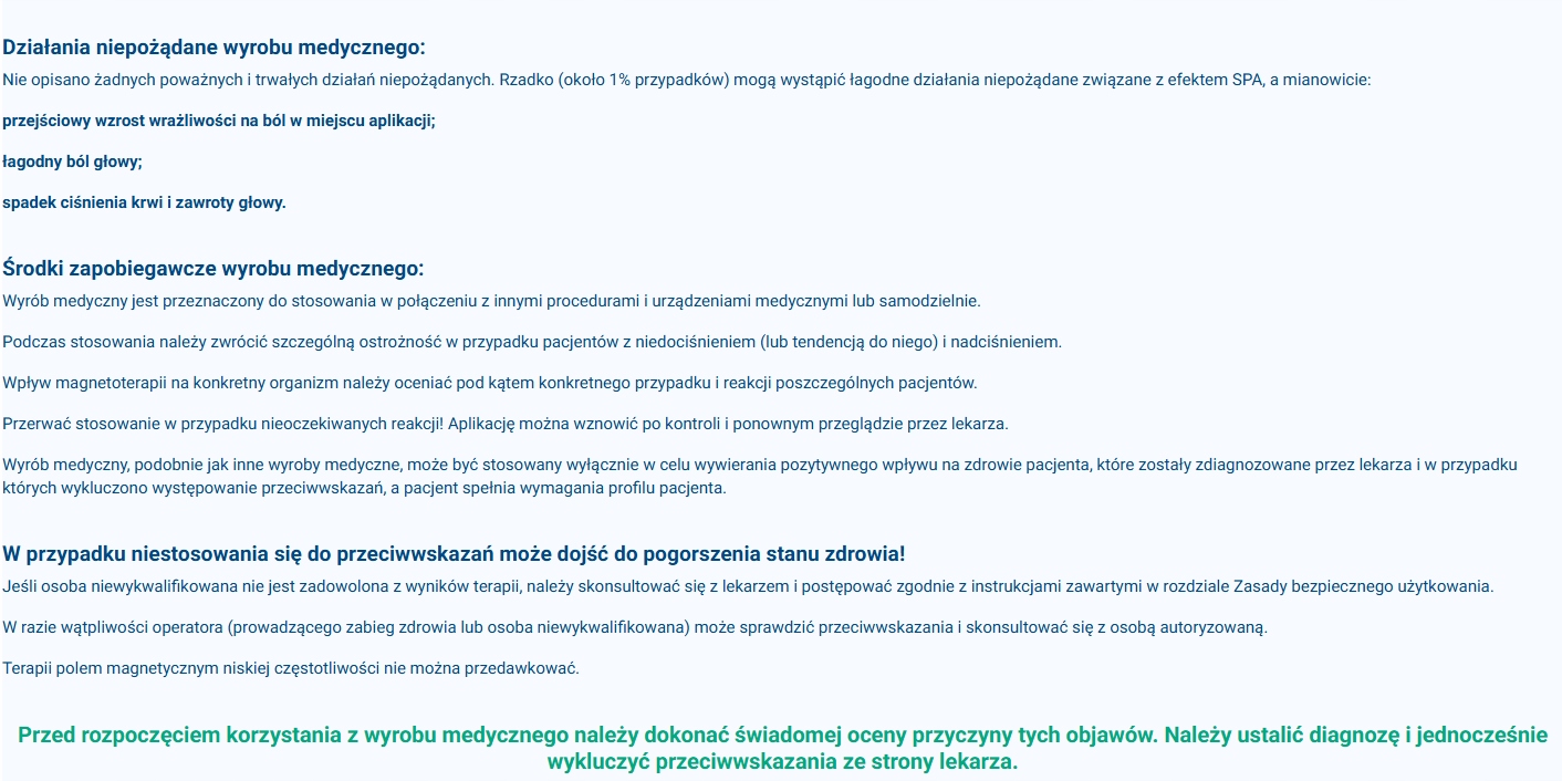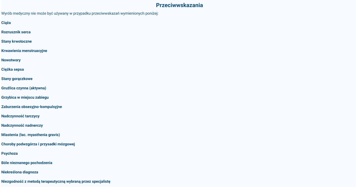 Przed rozpoczęciem korzystania z wyrobu medycznego należy dokonać świadomej oceny przyczyny tych objawów. Należy ustalić diagnozę i jednocześnie wykluczyć przeciwwskazania ze strony lekarza.