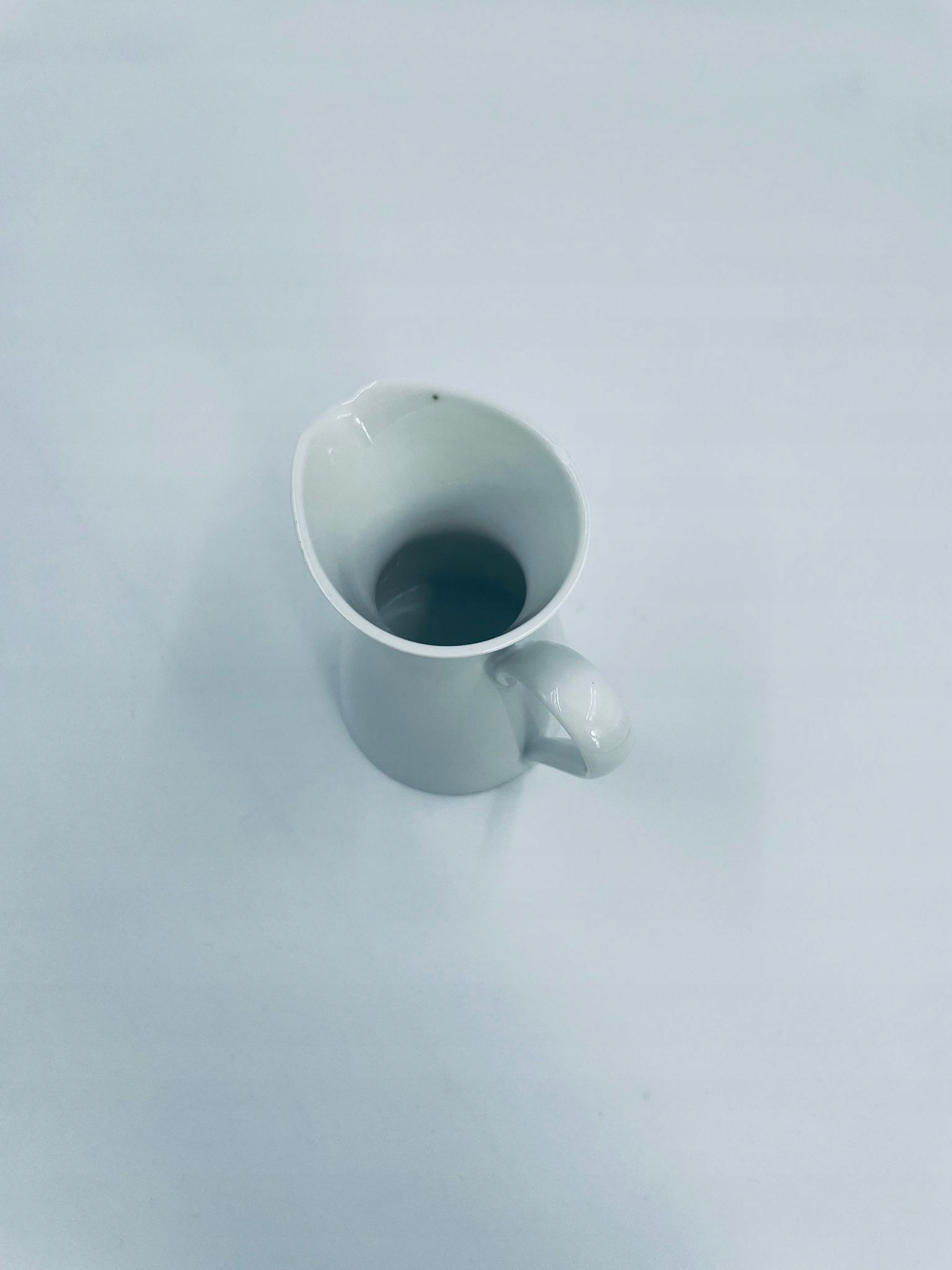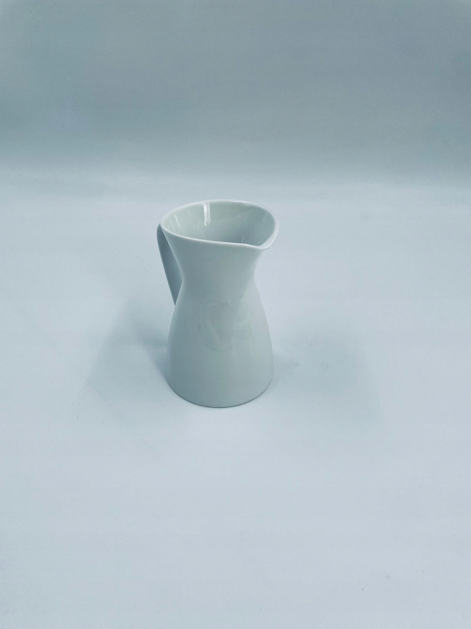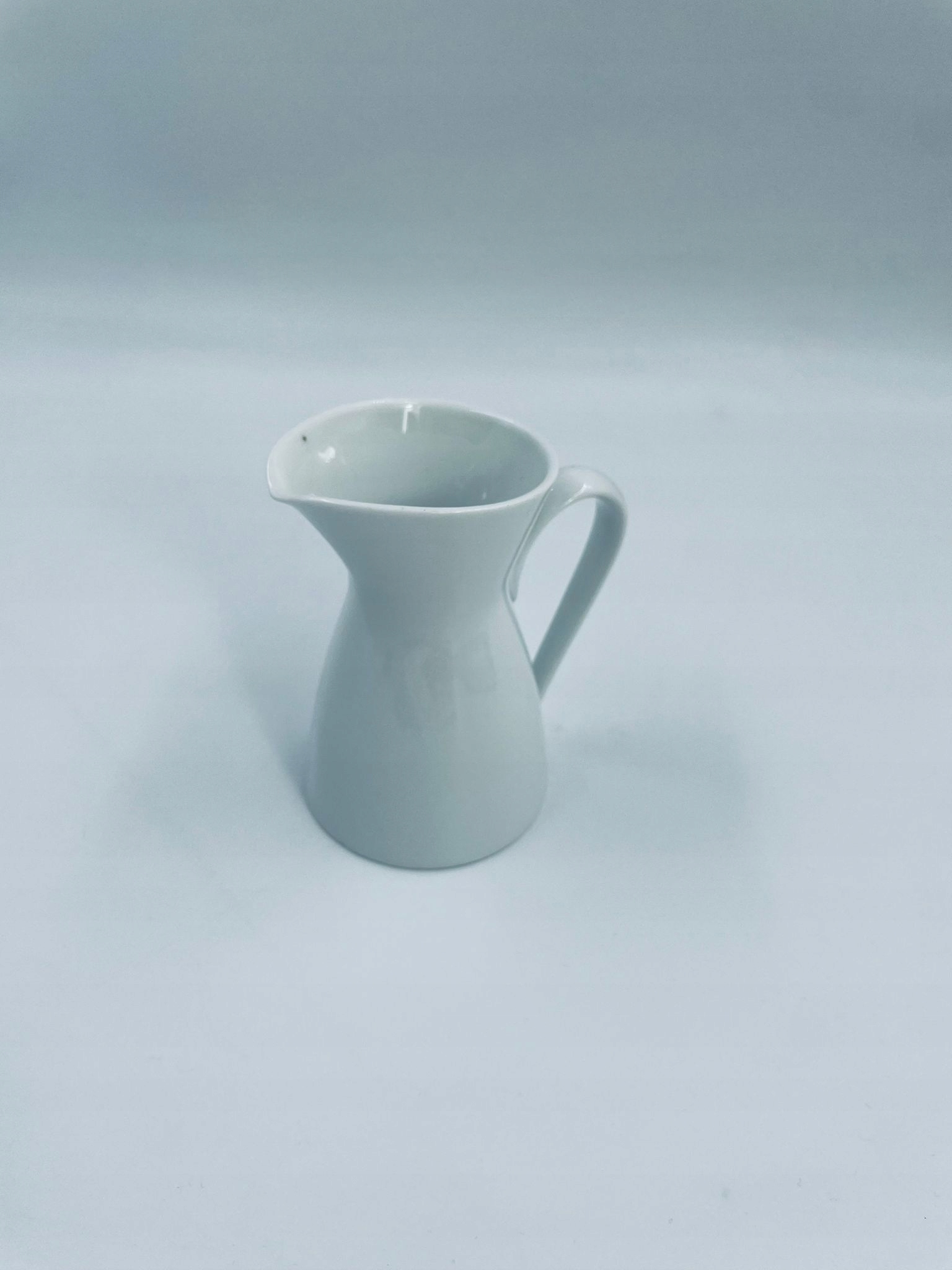 Dzbanuszek wytwórni Rosenthal, wykonany z wysokiej jakości białej porcelany. Dzbanuszek z uchwytem na mleko ma klasyczny kształt. Posiada mały uszczerbek na górnym rancie.