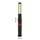 Jedną z najważniejszych funkcji latarki jest jej zakres regulacji o 270°. Ustaw lampę w pozycji jakiej chcesz gdziekolwiek chcesz, pod dowolnym kątem. Regulacja nie tylko zagwarantuje ci oświetlenie w każdych warunkach ale sprawi, że latarka będzie bardziej funkcjonalna. Lampa posiada również od spodu magnes, który pozwoli ci przymocowanie jej np. do maski twojego auta.