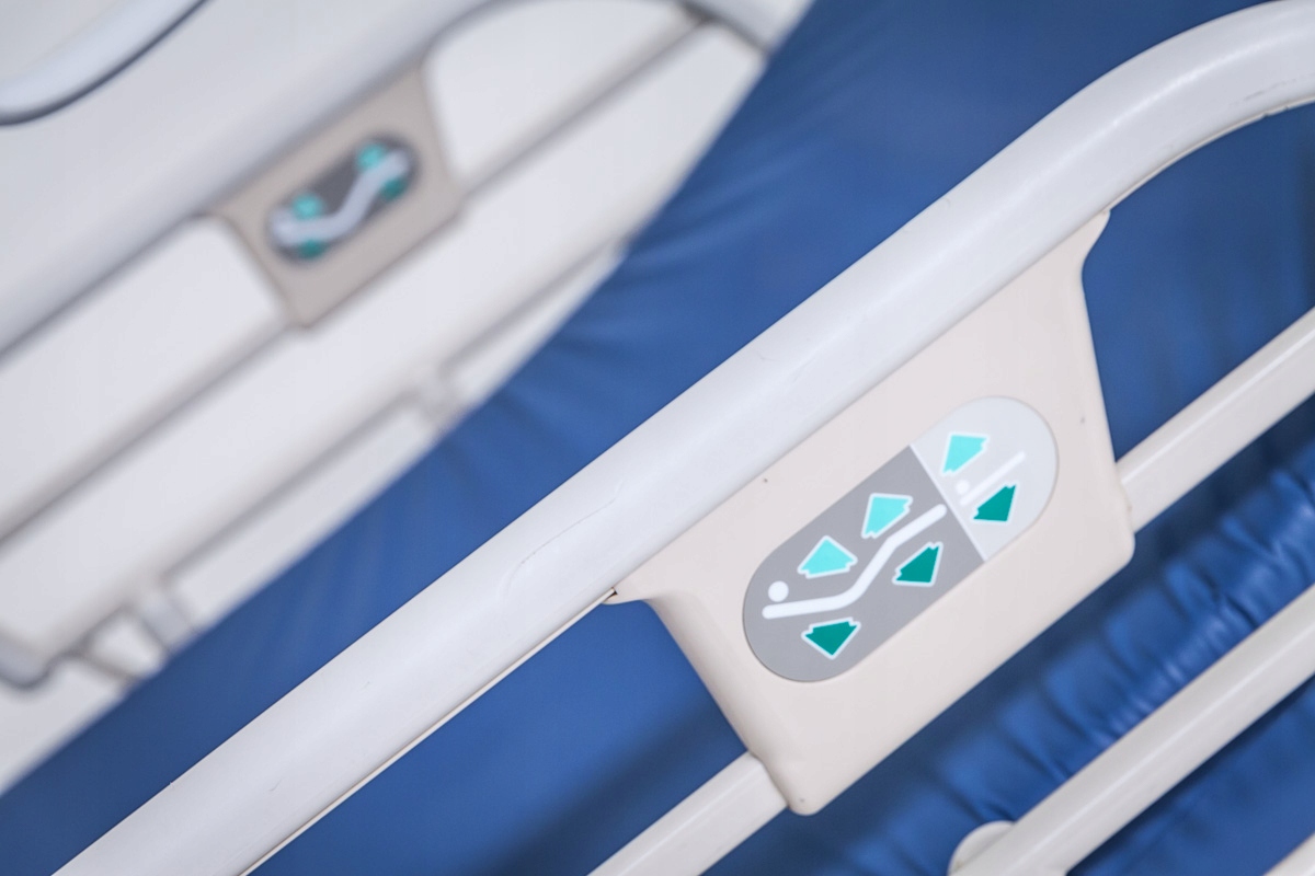 Wyposażone w w uniwersalne, składane boczne barierki, materac i wysięgnik z uchwytem dla pacjenta