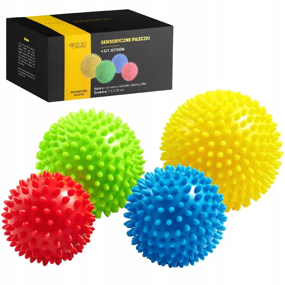 Zestaw piłeczek do masażu z kolcami 4 szt. Piłeczki do masażu z kolcami, służące do rozluźniania nadmiernie napiętych mięśni. Dedykowane osobom uprawiającym sport, trenerom oraz fizjoterapeutom. Piłeczki z kolcami są doskonałym uzupełnieniem terapii w gabinecie fizjoterapeutycznym. Sportowcom pozwalają wykonać po treningową autoterapię, a także przygotować mięśnie do jeszcze efektywniejszego treningu.