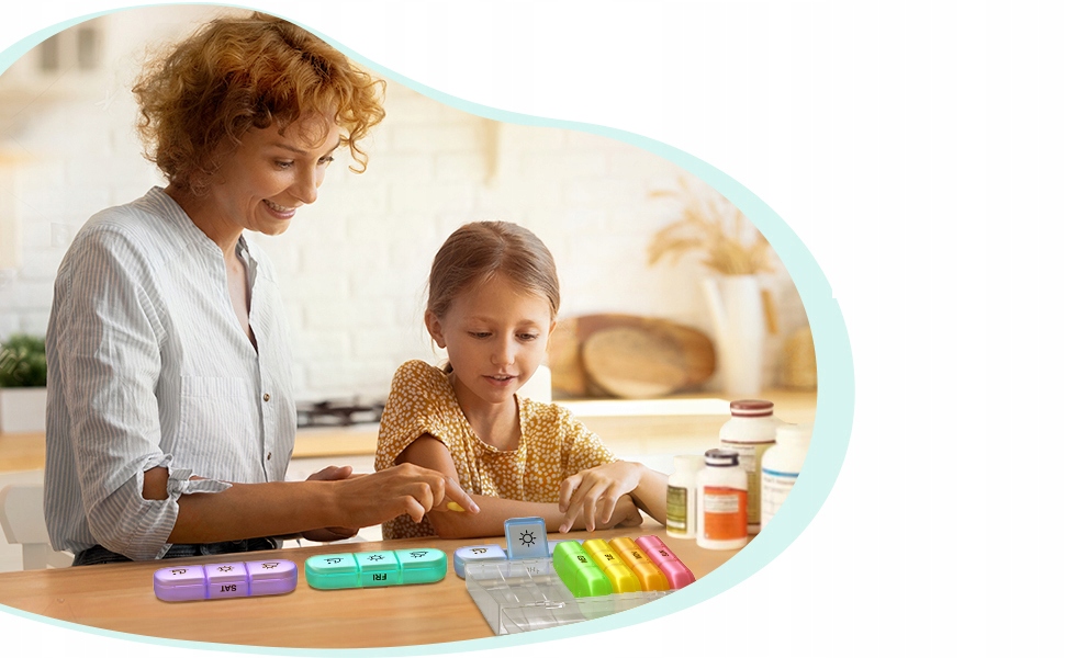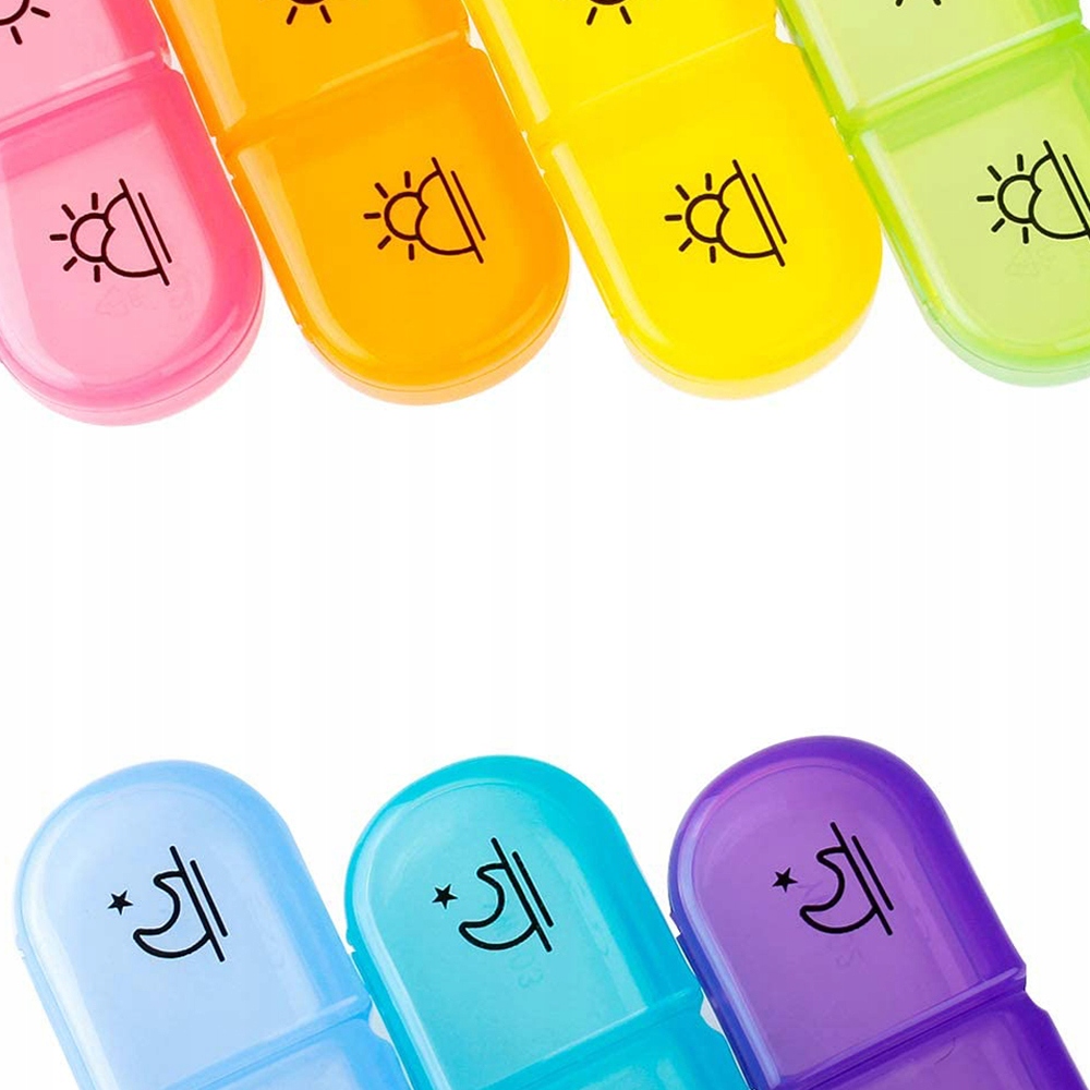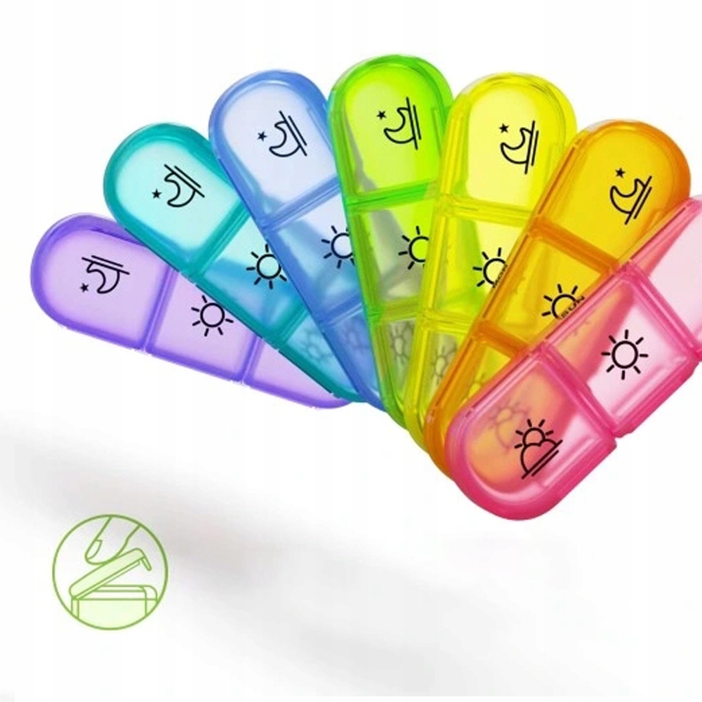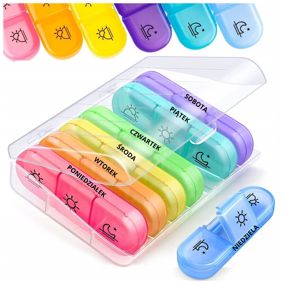 Zadbaj o regularność i porządek w przyjmowaniu leków dzięki praktycznemu pojemnikowi na leki z podziałem na dni tygodnia i pory dnia.