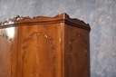 Szafa zachwyca pięknymi rzeźbieniami oraz giętymi nogami w stylu Ludwika XV.