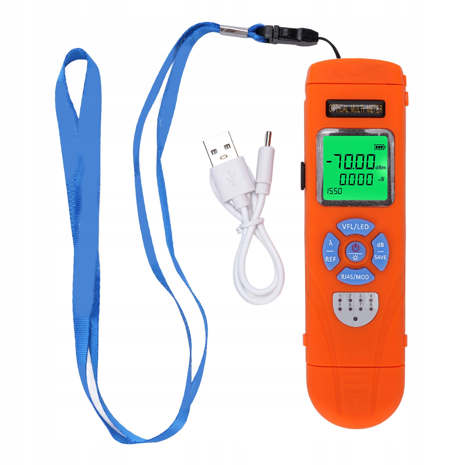 1. Funkcja Multi: Tester światłowodowy łączy optyczny miernik mocy, wizualny lokalizację uszkodzeń, światło LED i tester RJ45, zaspokajając różne potrzeby pomiarowe.