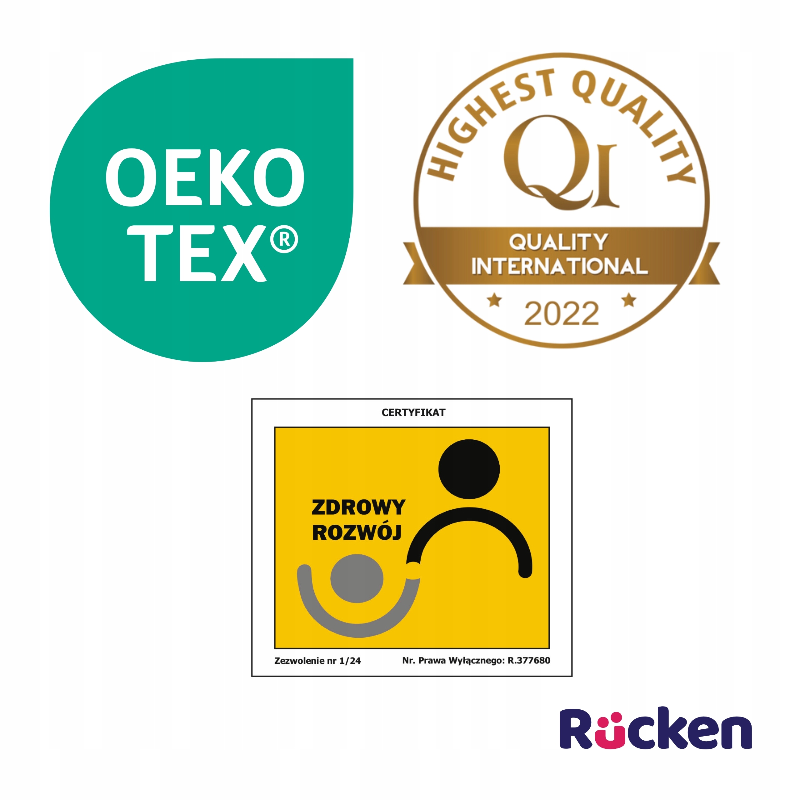 Materace oraz ochraniacze z serii Rücken x FizjoMommy jako jedyne na rynku zostały wyróżnione certyfikatem ZDROWY ROZWÓJ.