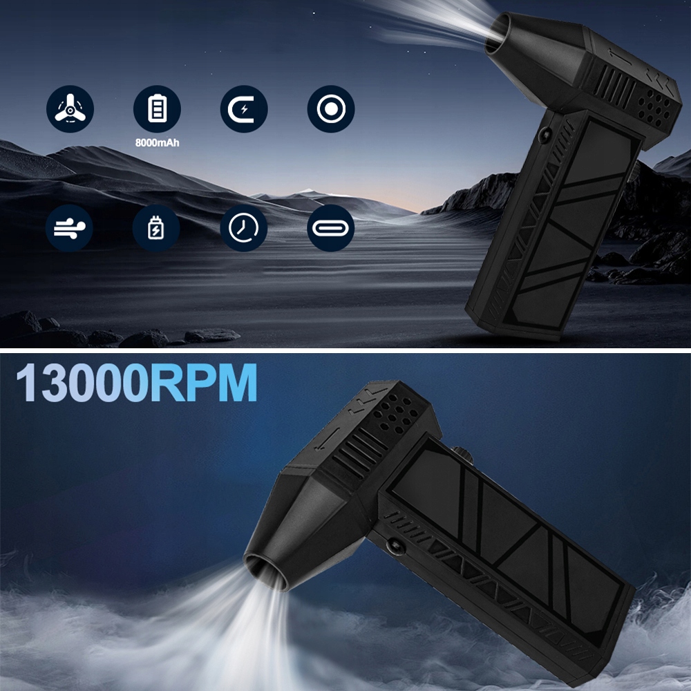 Silnik o prędkości 130 000 obr./min i szczytowa prędkość wiatru przekraczająca 52 m/s (≥51,0 m/s dla supertajfunu) zapewniają silny efekt.