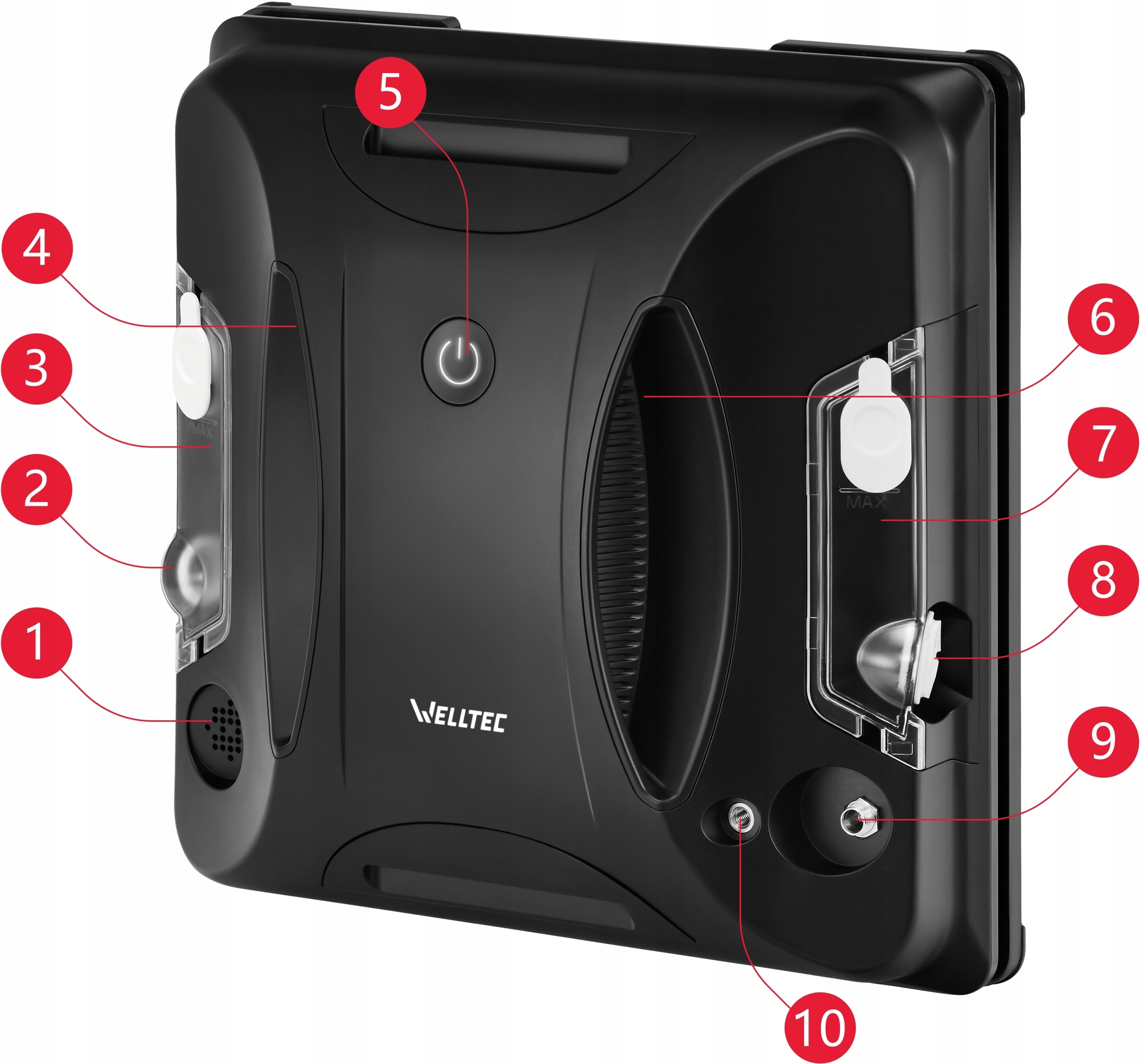 ✅ Wygodne, wyprofilowane uchwyty z antypoślizgową powierzchnią 1️⃣ pozwalają na wygodne i bezpieczne przenoszenie robota.