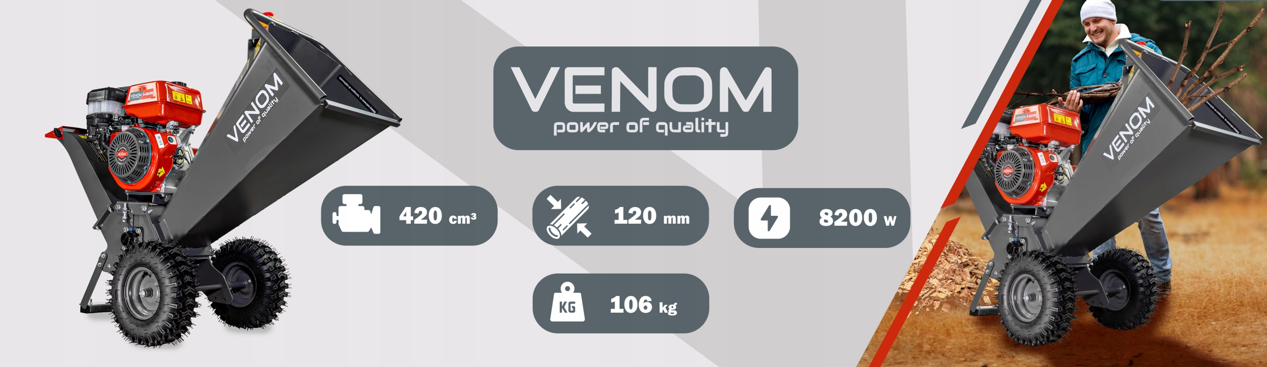 Rozdrabniacz VENOM to sprzęt, który łączy wygodę, trwałość i moc, dzięki czemu praca staje się łatwiejsza i bardziej efektywna.