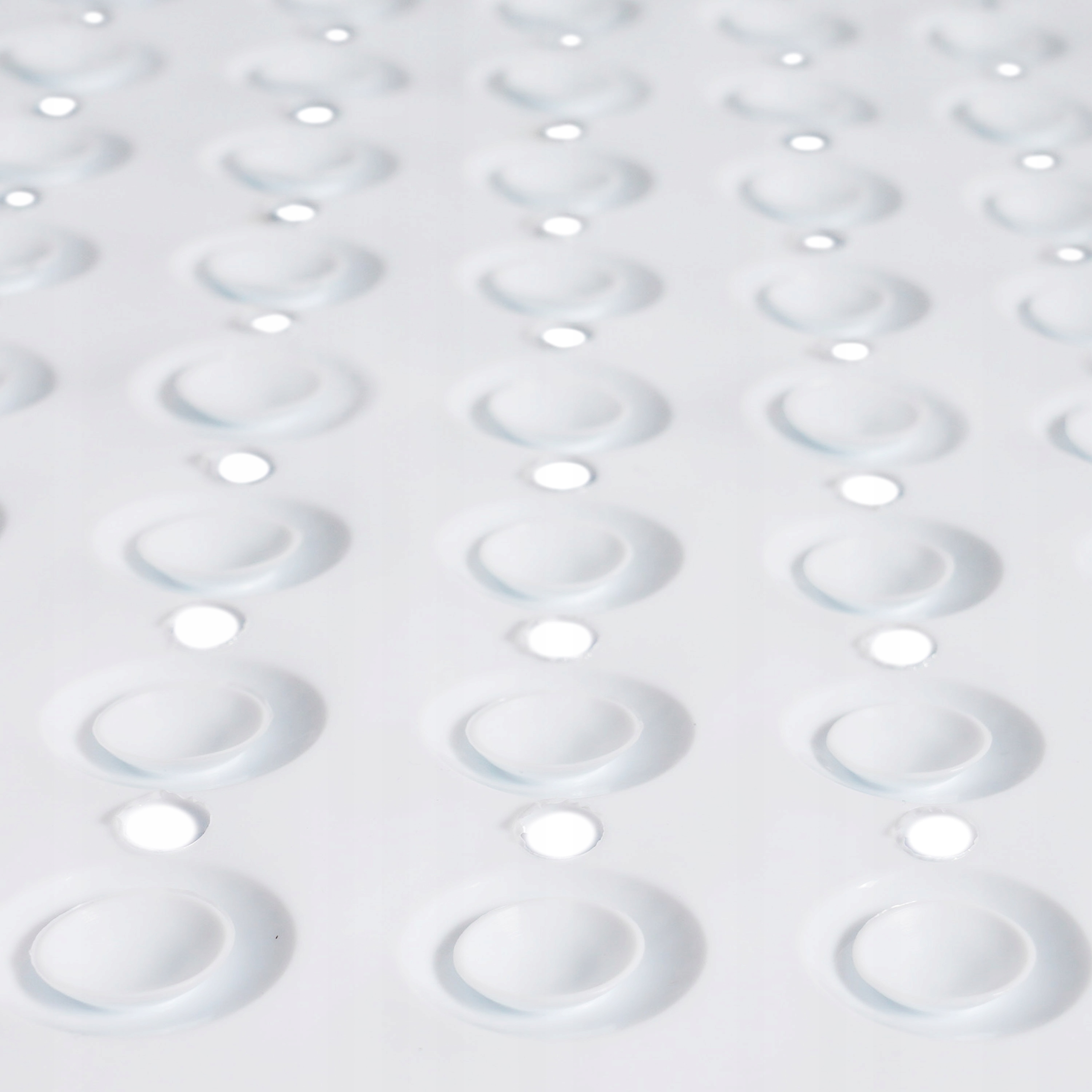 ⏹️Stabilnie przylega dzięki przyssawkom – spód maty wyposażony jest w liczne przyssawki, które mocno trzymają się gładkiej powierzchni wanny lub brodzika, zapobiegając jej przesuwaniu się.