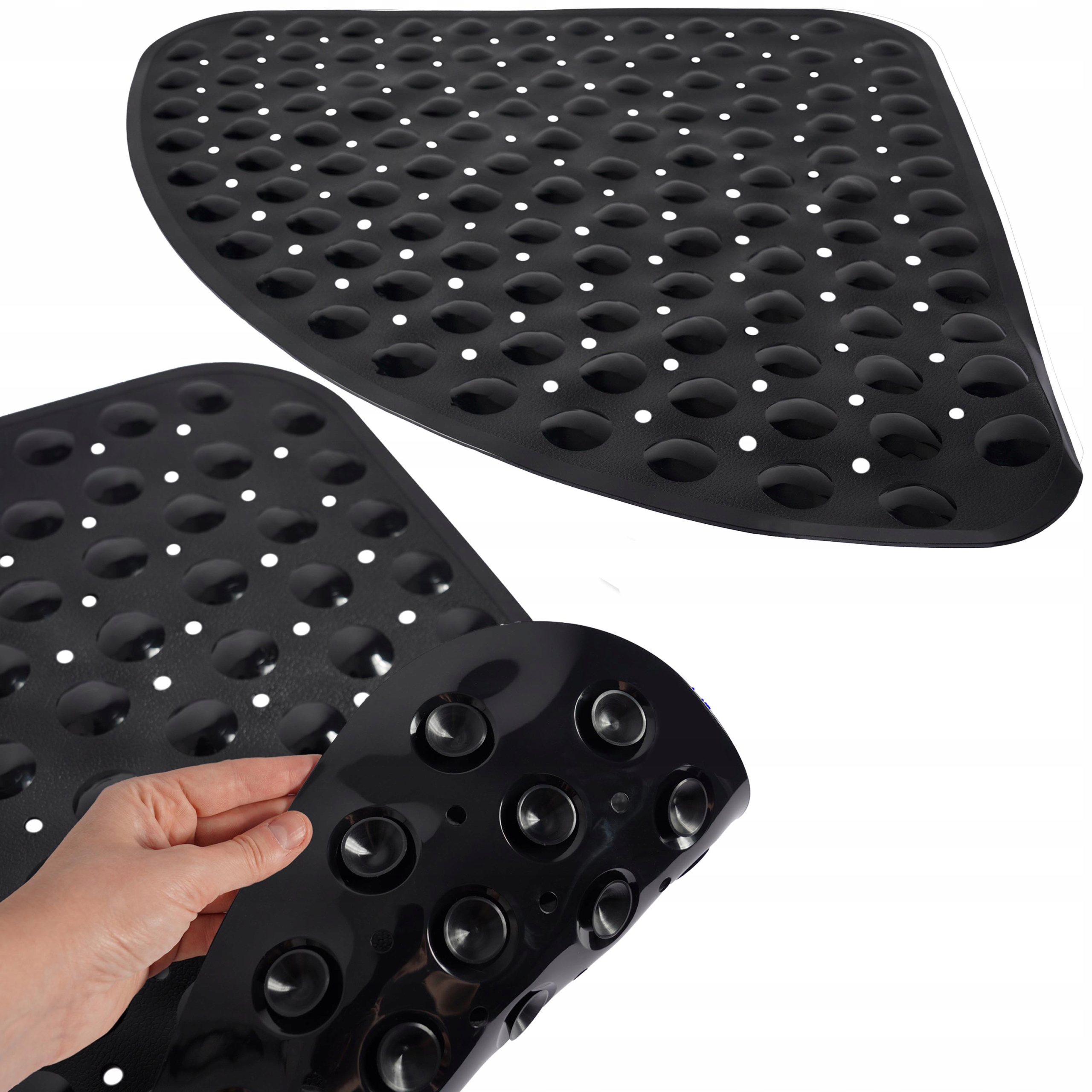Dzięki otworom odpływowym w strukturze woda nie zalega na macie, co sprawia, że schnie szybciej i jest bardziej higieniczna. Czarny kolor nadaje jej estetyczny i uniwersalny charakter – doskonale komponuje się z nowoczesnymi łazienkami, optycznie je rozjaśniając i nie zaburzając wystroju.