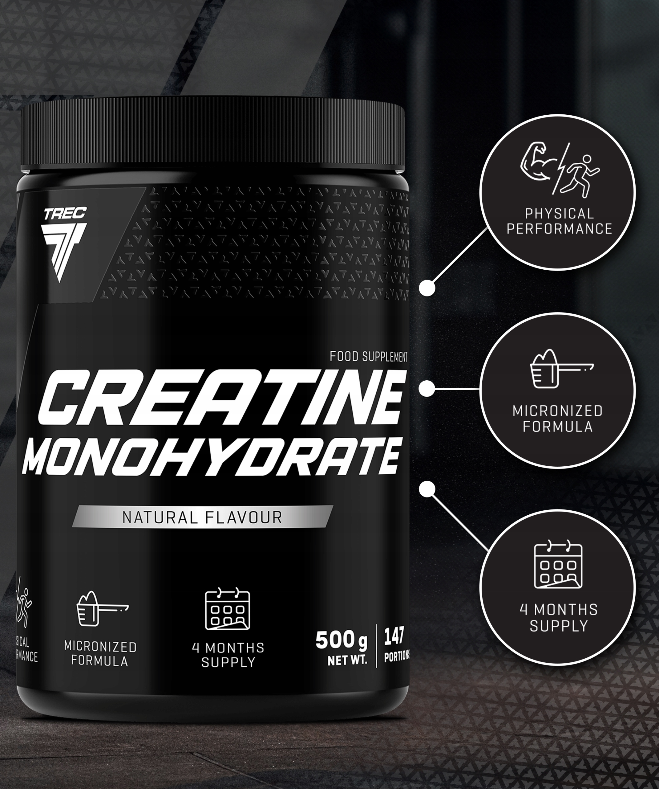 ✅ Trec Creatine Monohydrate to kreatyna w formie mikronizowanej. Oznacza to, że cząsteczki kreatyny są zmniejszone do mikroskopijnych rozmiarów. Dzięki temu suplement jest łatwiej rozpuszczalny w wodzie i szybciej przyswajany przez organizm.