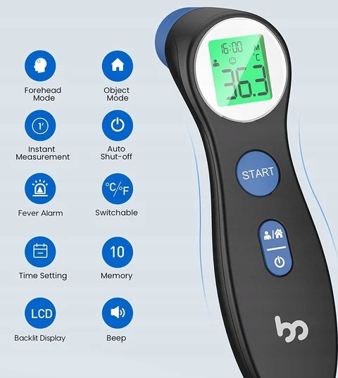 Termometr bezdotykowy cyfrowy na podczerwień LCD dla dzieci i dorosłych.