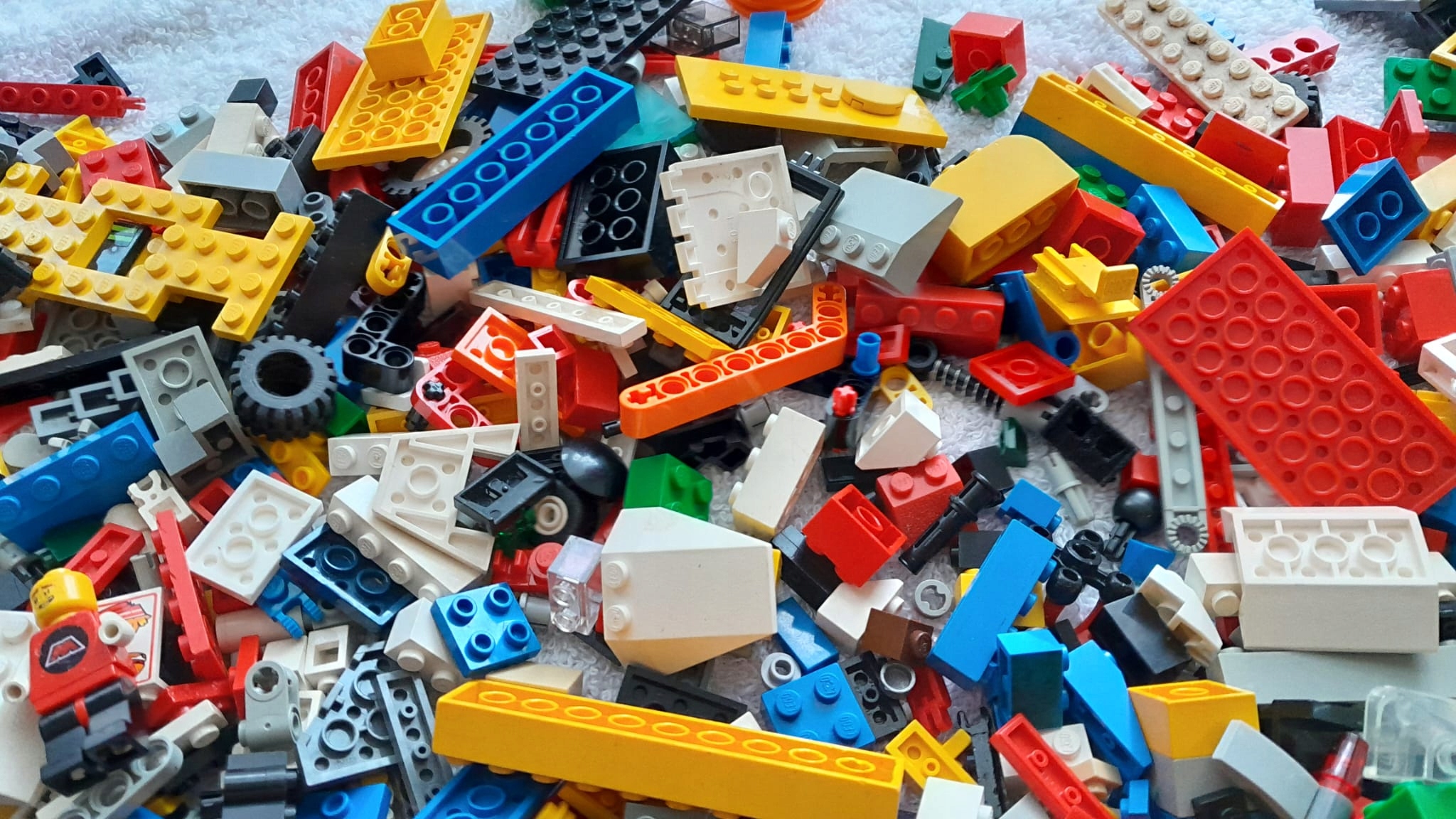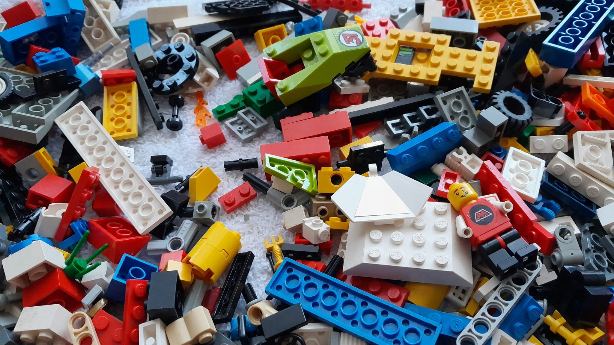 LEGO – 1 kg klocków z 1 MINIFIGURKĄ z akcesoriami (2 sztuki akcesoriów np. fryzura, miecz, banan, kask itp.) GRATIS