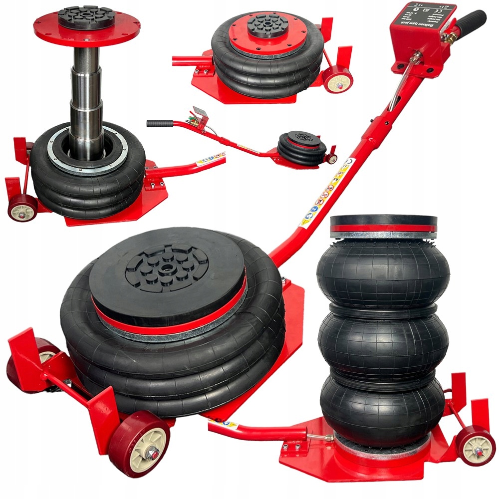 Podnośnik pneumatyczny poduszkowy to profesjonalny sprzęt, który z powodzeniem może być używany m .in. w zakładach wulkanizacyjnych oraz warsztatach samochodowych, czy w gospodarstwach rolnych. Prezentowany bałwanek posiada wzmocnioną konstrukcję z mocniejszymi tłokami, maksymalnie uniesie punktowo pojazdy o masie aż do 3,5 ton. Wewnątrz poduszki zastosowano wysokiej jakości teleskop wewnętrzny zapewniający stabilność konstrukcji nawet pod maksymalnym obciążeniem. Guma pozwala na bezpieczne unoszenie oraz ułatwia umiejscowienie podnośnika we właściwym miejscu co znacznie przyspiesza i ułatwia pracę. Podnośnik zasilany jest sprężonym powietrzem o ciśnieniu roboczym maks. 12 bar.