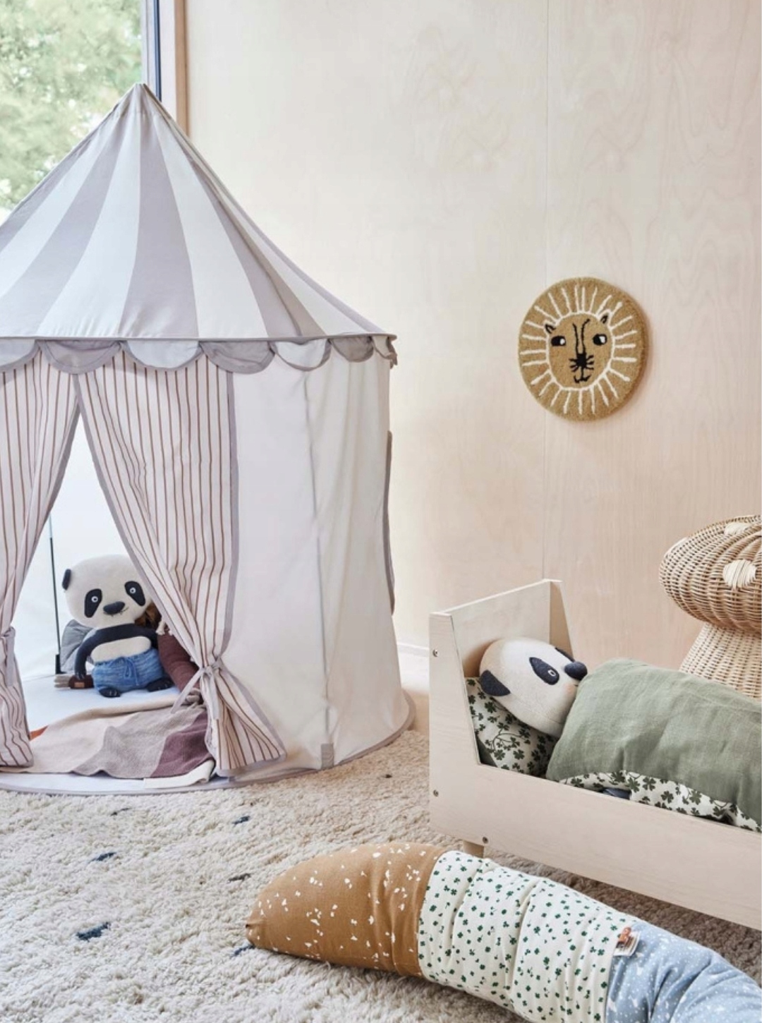 Stwórz godziny zabawy z fantastycznym namiotem cyrkowym, w którym granice wyznacza tylko Twoja wyobraźnia. Subtelne, stonowane kolory tworzą prosty i nowoczesny wygląd, który idealnie pasuje do każdego pokoju dziecięcego.