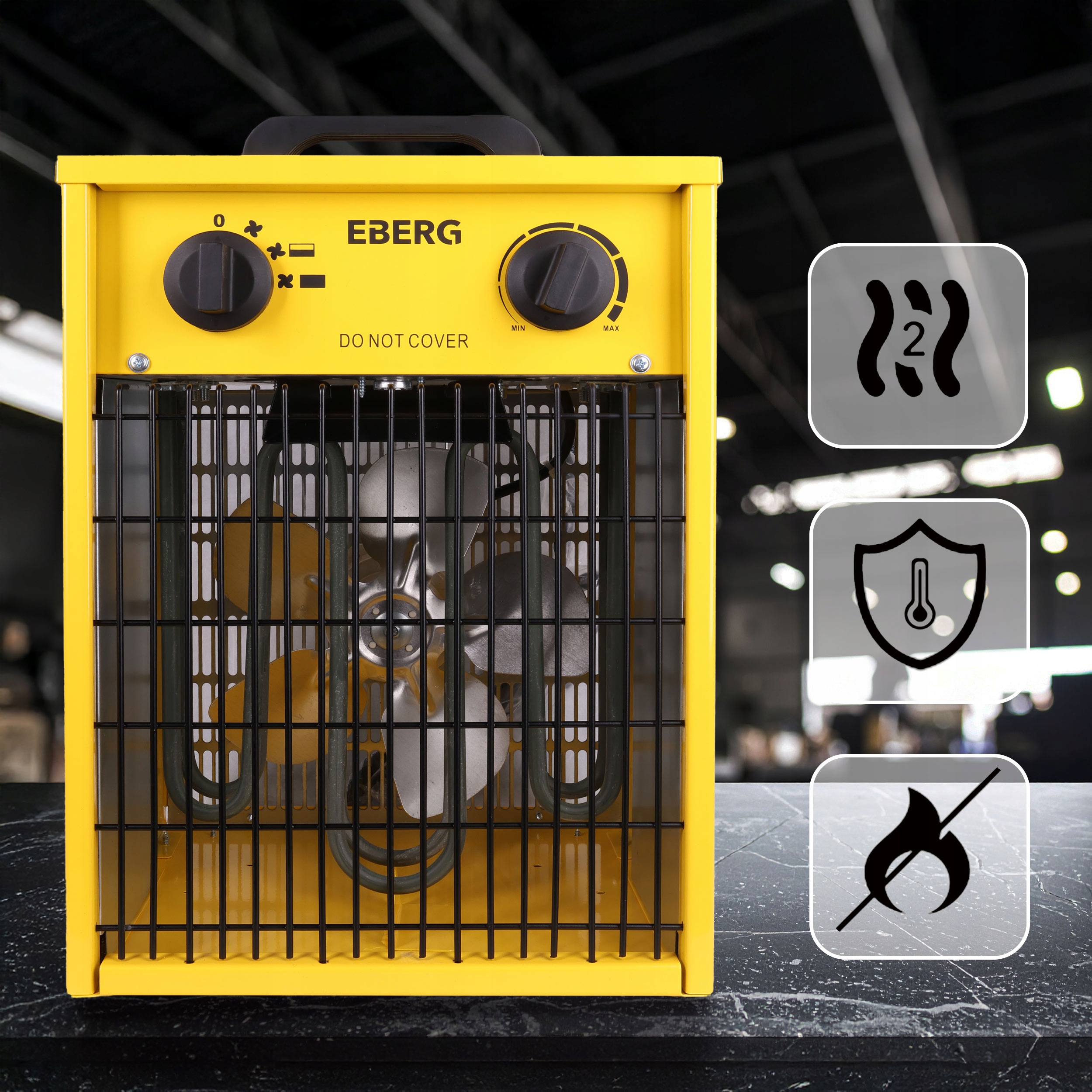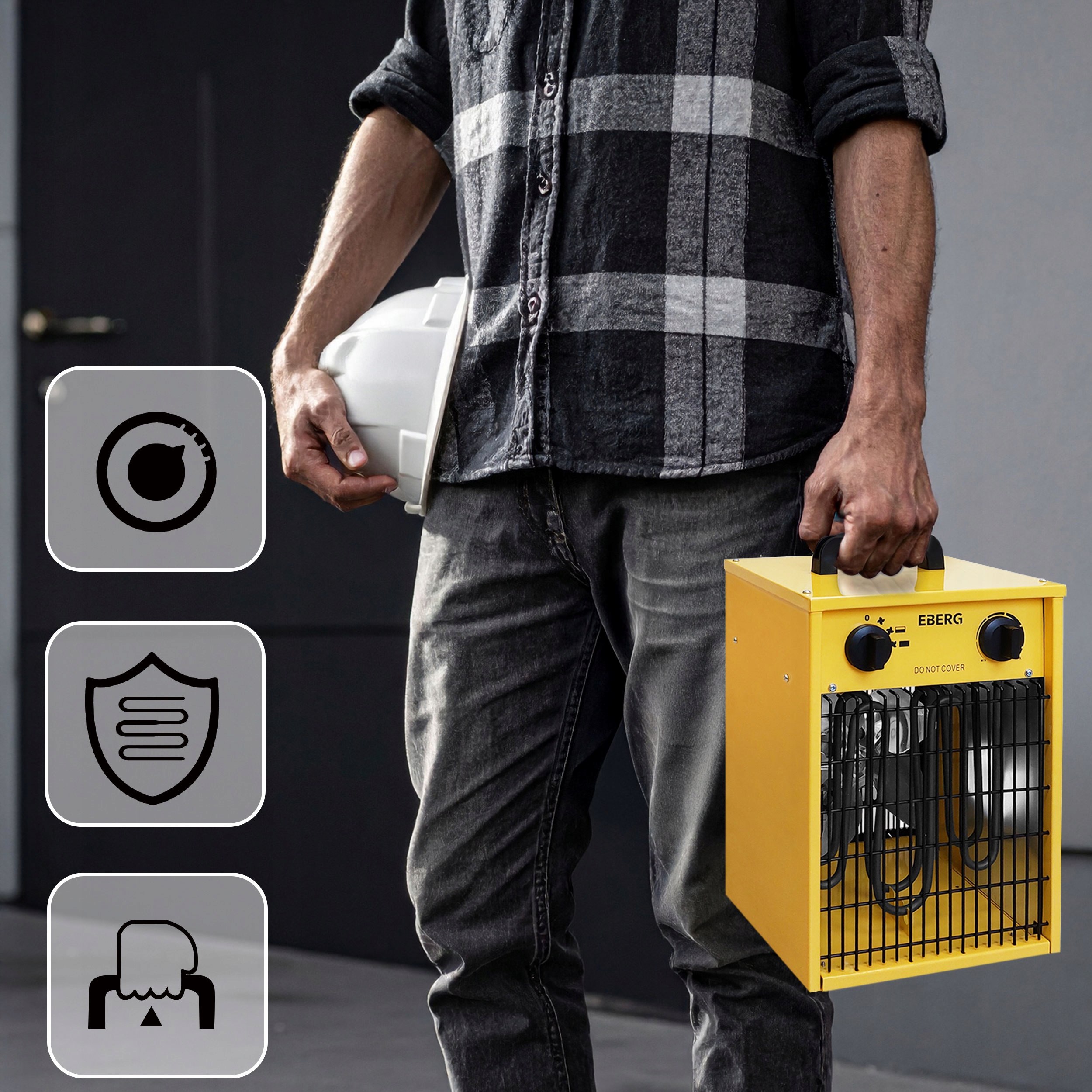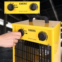 Termowentylator EBERG® EBH 30 zapewnia pełne bezpieczeństwo i komfort użytkowania. Dzięki ochronie IPX4 oraz pracy bez ognia i spalin, nie zużywa tlenu i może pracować bez przerwy. Automatyczne zabezpieczenia przed przegrzaniem gwarantują jego niezawodność i długą żywotność.