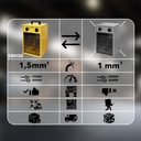 Szybko i skutecznie dogrzewa każde domowe pomieszczenie – od salonu po kuchnie i garaż, zapewniając komfort ciepła natychmiast po włączeniu. Wbudowany wentylator rozprowadza ciepło równomiernie, dzięki czemu natychmiast dociera ono nawet w najdalsze zakątki domu.