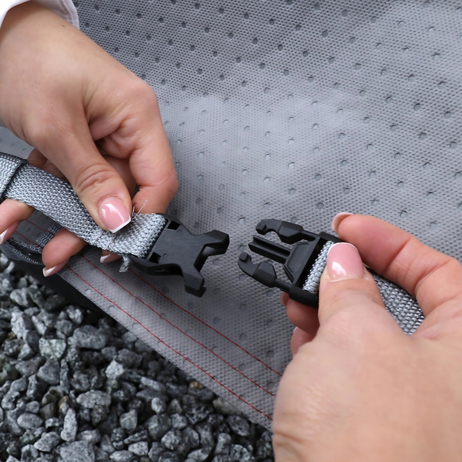 ✅ Stabilne mocowanie (mocne gumy + pasy stabilizujące) – Nawet podczas mocniejszych podmuchów pokrowiec pozostaje na swoim miejscu.
