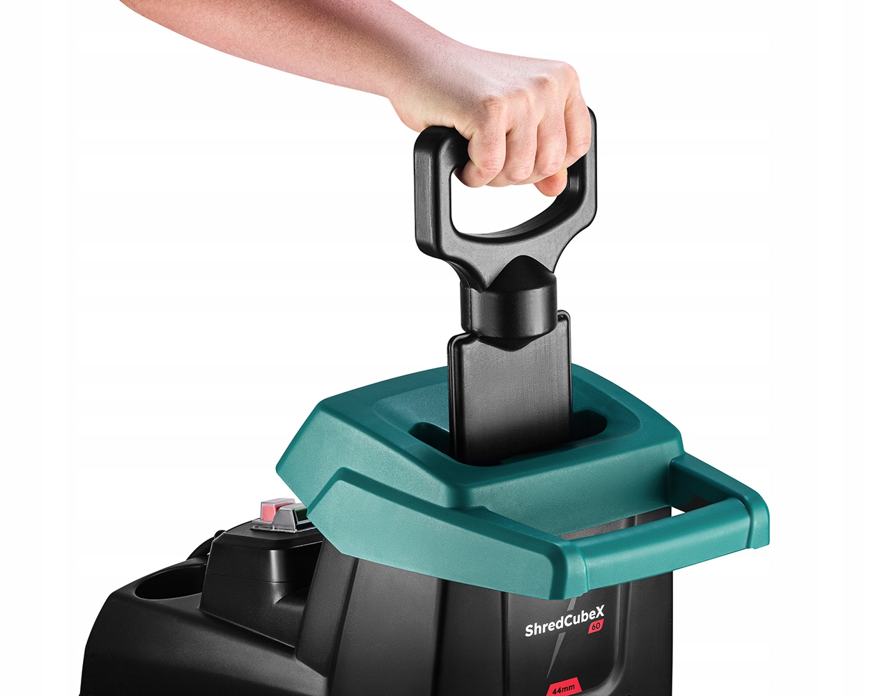 Dodatkowo ShredCubeX 60 oferuje innowację, której nie znajdziesz nigdzie indziej – uchwyt na popychacz.